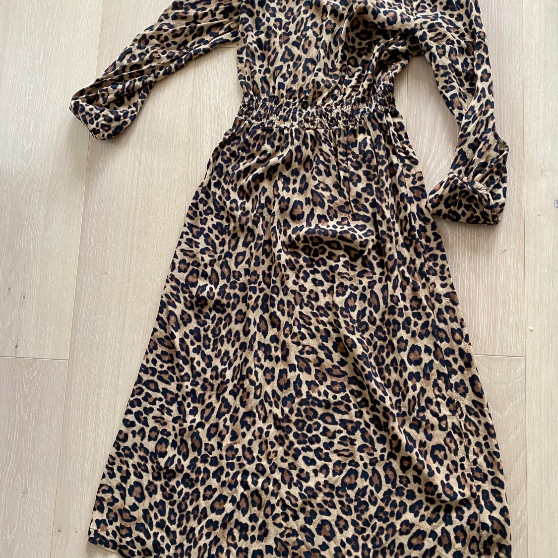 Fin och jätteskön leopardklänning i s, midiklänning .