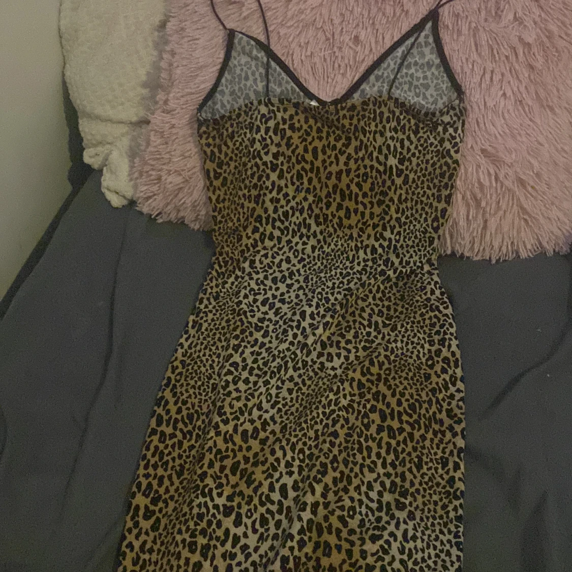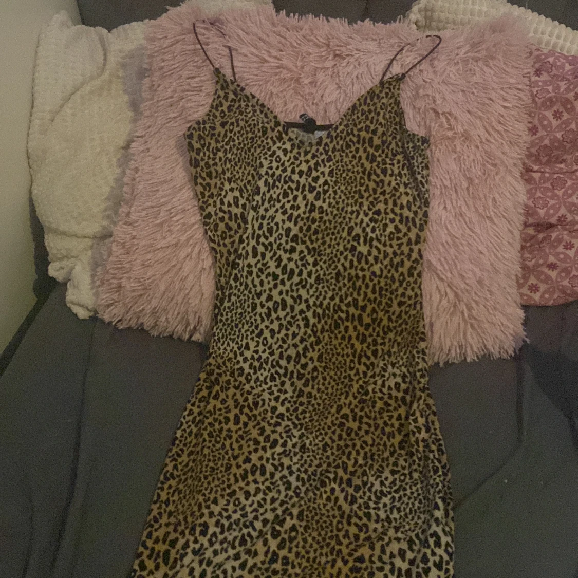 Det är en ganska festlig klänning men santidigt bekväm så man kan sova i den kan användas på olika sätt klänningen är lite över knäna kort den är i bra skick inte riktigt min stil den va en present har havt på mig den 2-3 ggr