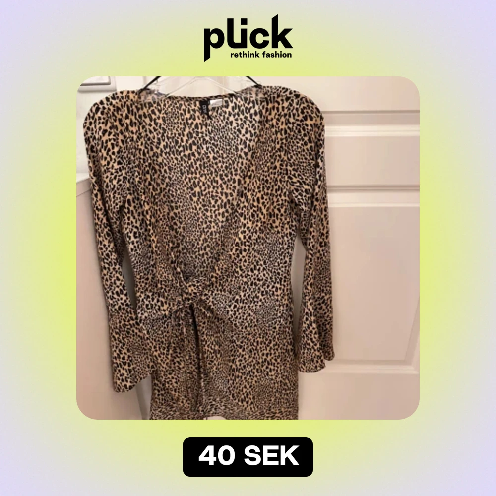 Säljer en supercool leopardmönstrad klänning med knyt framtill. Den har en djup v-ringning och långa ärmar, perfekt för en utekväll eller fest. Materialet känns mjukt och bekvämt, och den sitter snyggt på kroppen.