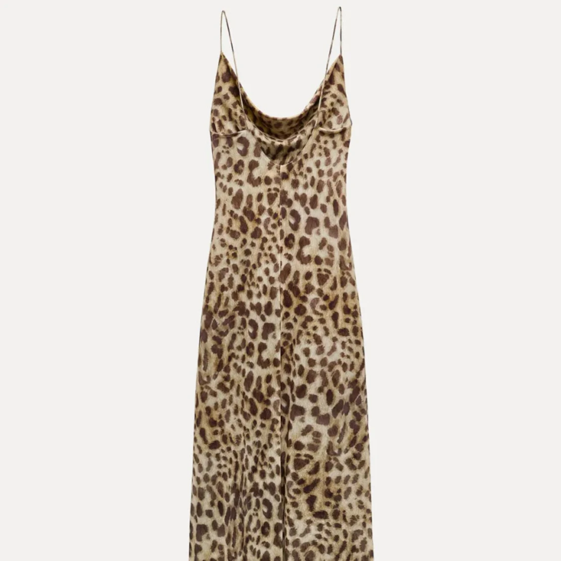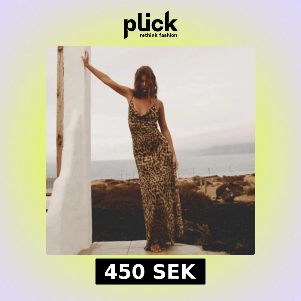 Trendig leopardmönstrad långklänning med smala axelband. Säljer då den inte kommer till användning. Helt ny och endast testad