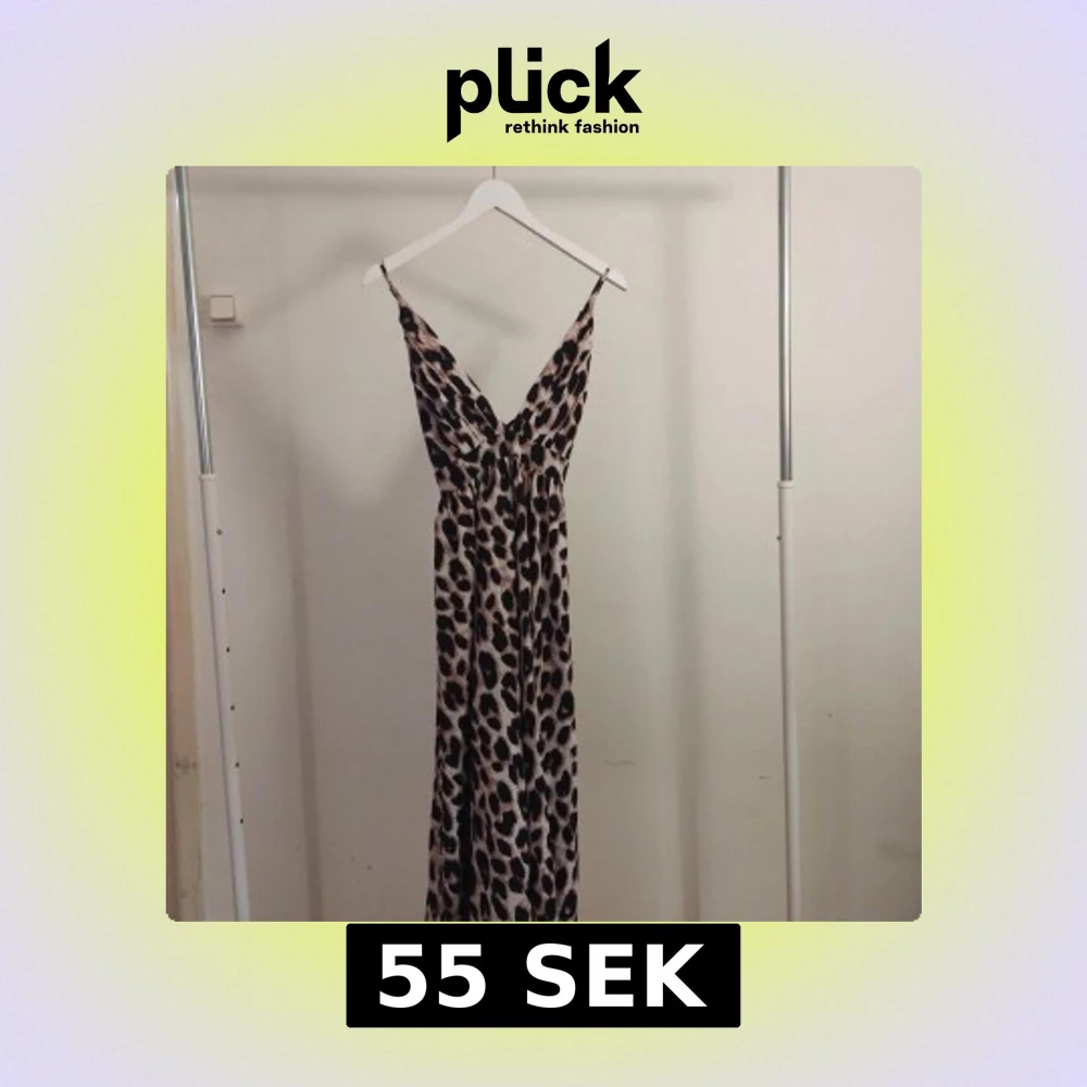 Snygg långklänning med leopardmönster och djup v-ringning. Klänningen har tunna axelband och ett lätt, flytande tyg som ger en cool och trendig look. Perfekt för dig som vill sticka ut med ett djuriskt mönster och en feminin siluett.