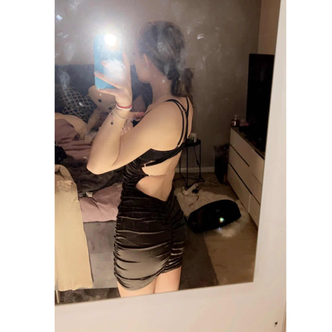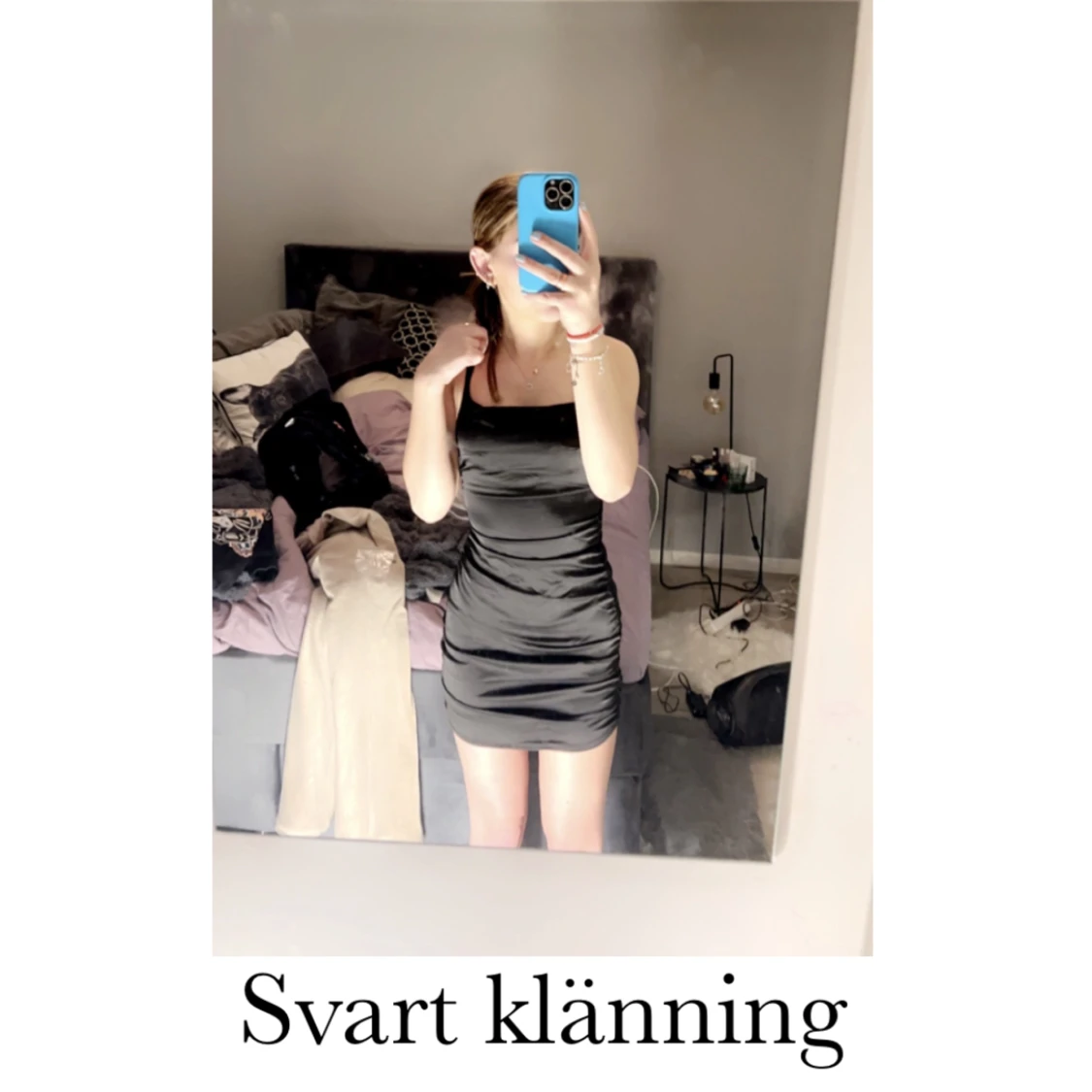 Säljer denna fina svarta klänning med en glitter grej bak vid ryggen. Den är i bra skick för har aldrig använt den❤️köparen står för frakten!🥰