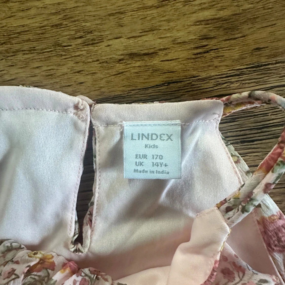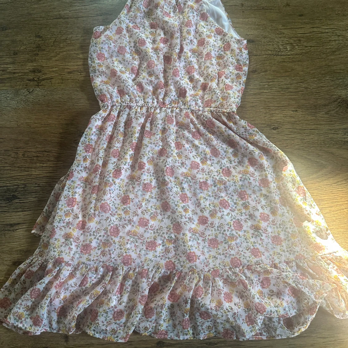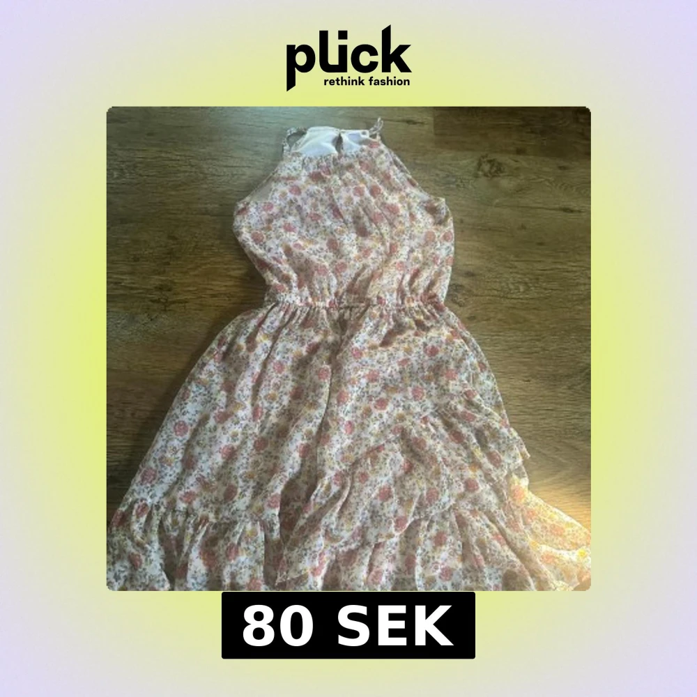 Söt blommig klĂ€nning frĂ„n Lindex i storlek 170. KlĂ€nningen Ă€r ljus med rosa, gula och gröna blommor. Ărmlös modell och perfekt för varma dagar!! đđ