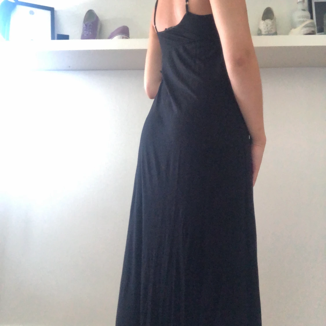 Svart långklänning i stl. S. Passar både till vardags och finare tillfällen.