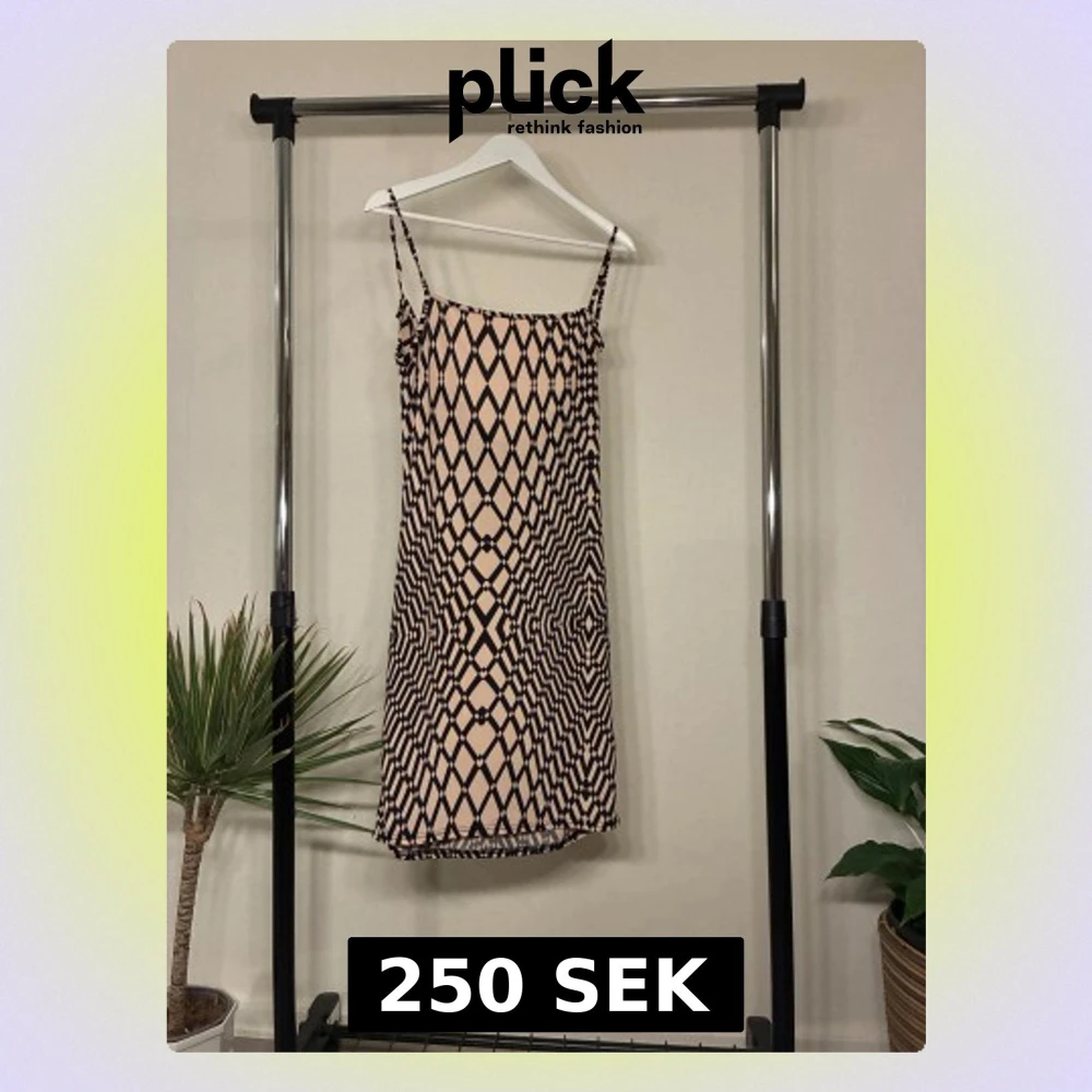 Snygg kortklänning från Sisters Point i beige och svart med ett grafiskt rutmönster. Klänningen har smala axelband och en lätt figurnära passform. Materialet är mjukt och känns som silke. Finns 2st för dig och bästis eller bara en backup. OANVÄND