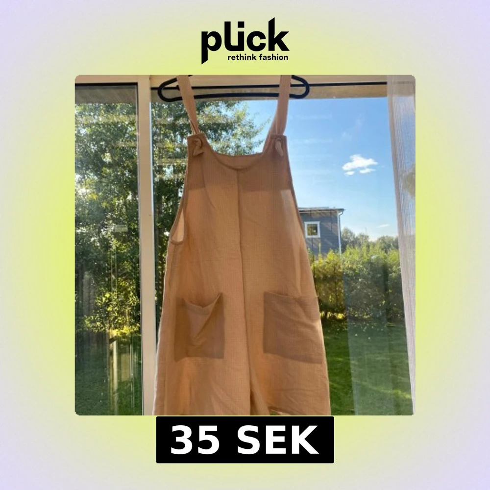 Kort beige klänning - Kort beige sommarklänning med struktur på (syns på bild 3). Fint skick men tyvärr för kort för att komma till användning hos mig.