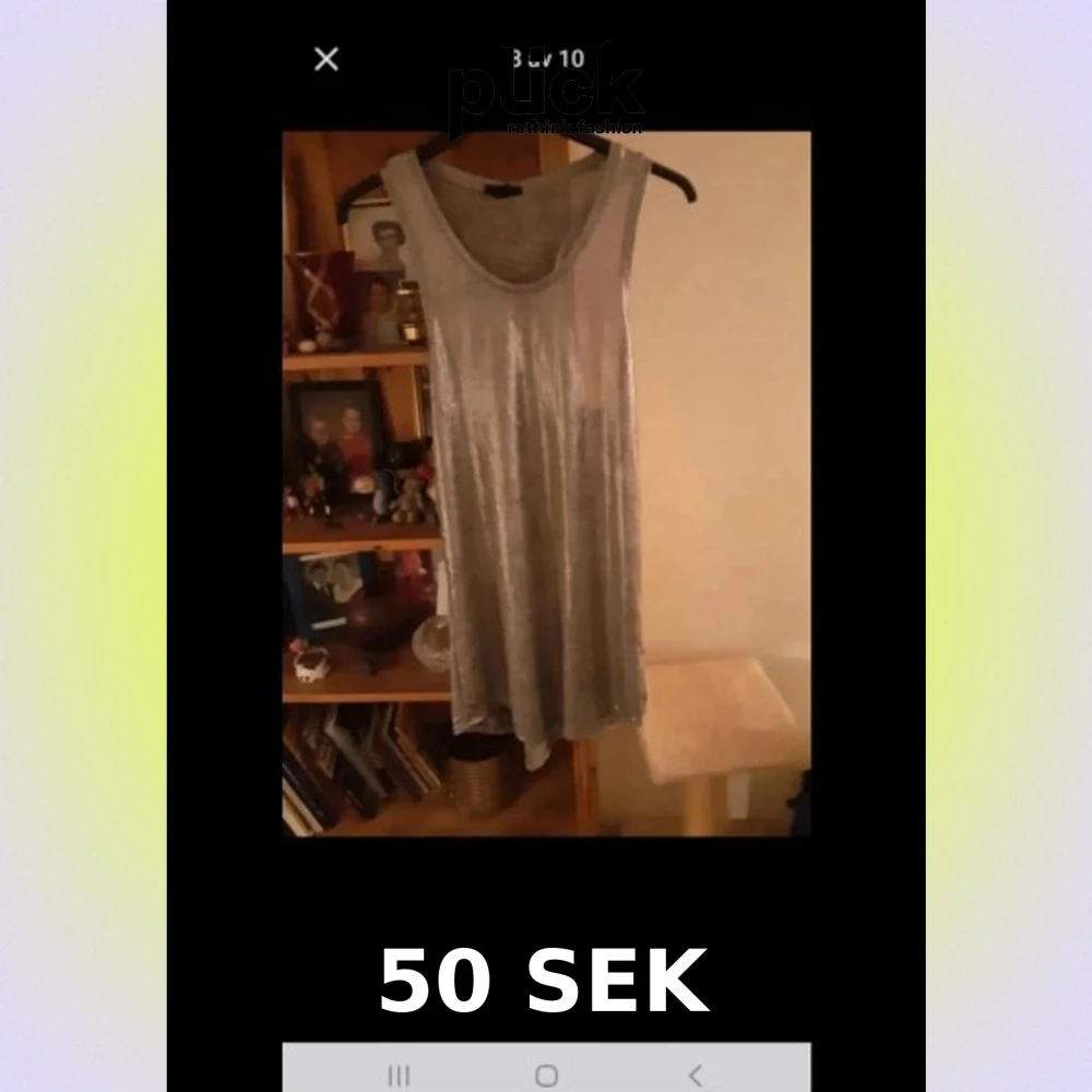 Snygg silvrig kortklänning med rund halsringning och ärmlös design. Klänningen har en glansig finish som ger en festlig känsla och är tillverkad i ett mjukt material som faller fint. Perfekt för dig som vill sticka ut med en enkel men cool look.