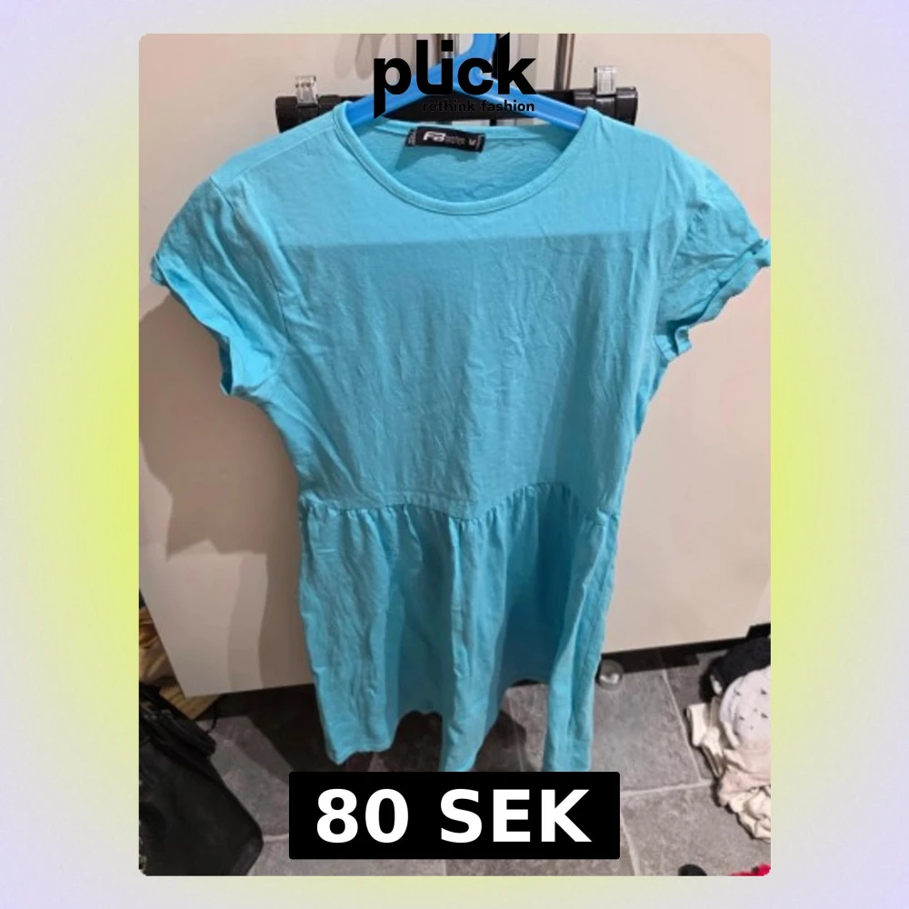 Säljer en ljusblå klänning från FB Sister i storlek M. Klänningen är kort, har rund halsringning och korta ärmar. Tillverkad i 100% bomull vilket gör den mjuk och skön. Enkel och stilren design som är lätt att matcha med sneakers eller sandaler.