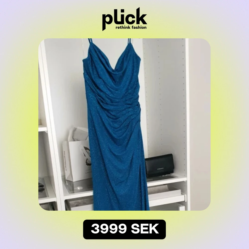 Säljer den här balklänning då jag köpte en annan till min bal och kunde inte lämna tilbka den här. Den är i storlek m men passar mig som brukar ha s. Den är även öppen i ryggen så går att justera där. Köp direkt för 3000kr