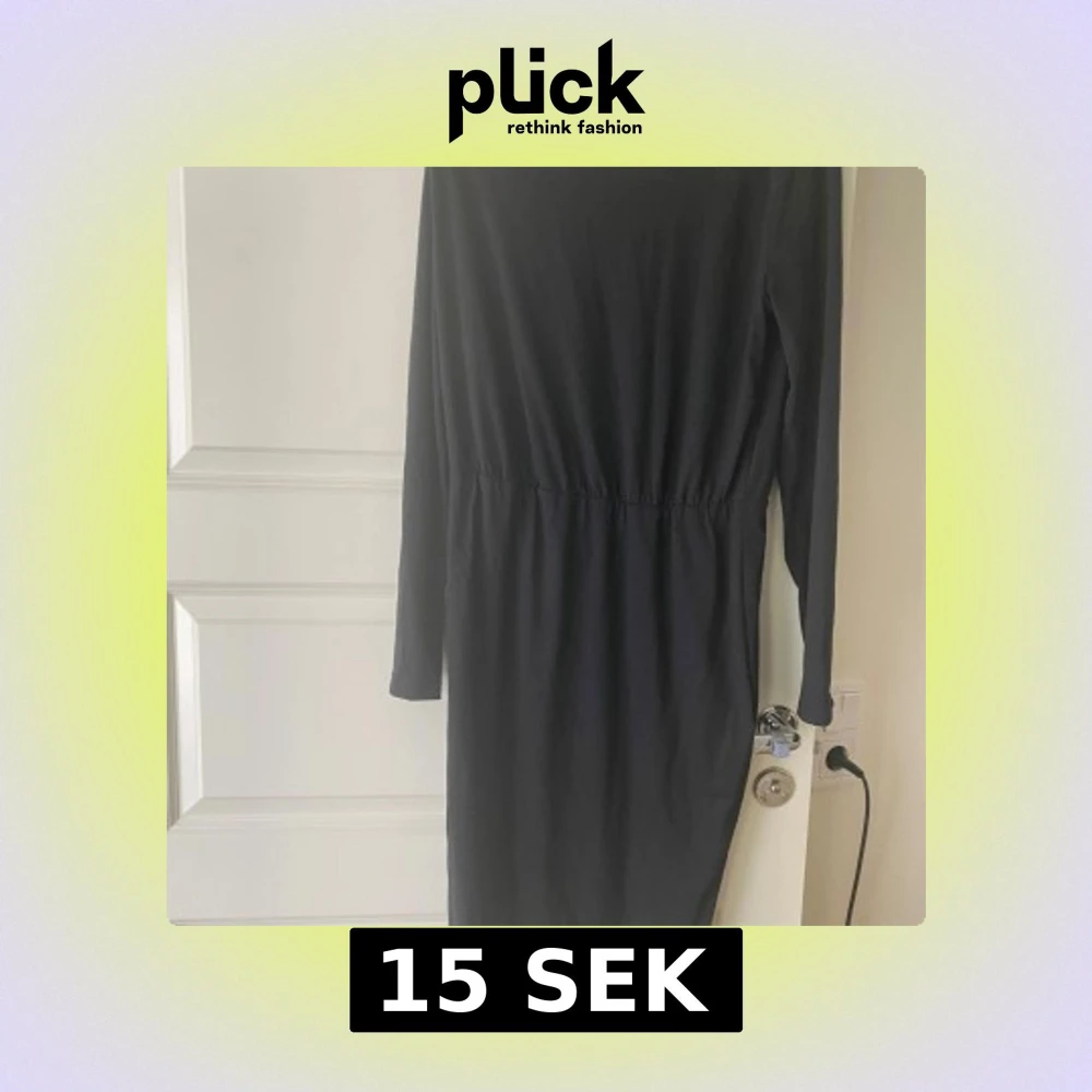 En stilren svart klänning med långa ärmar och resår i midjan som ger en smickrande passform. Klänningen har en rak siluett och är tillverkad i ett mjukt material, perfekt för både vardag och mer uppklädda tillfällen.
