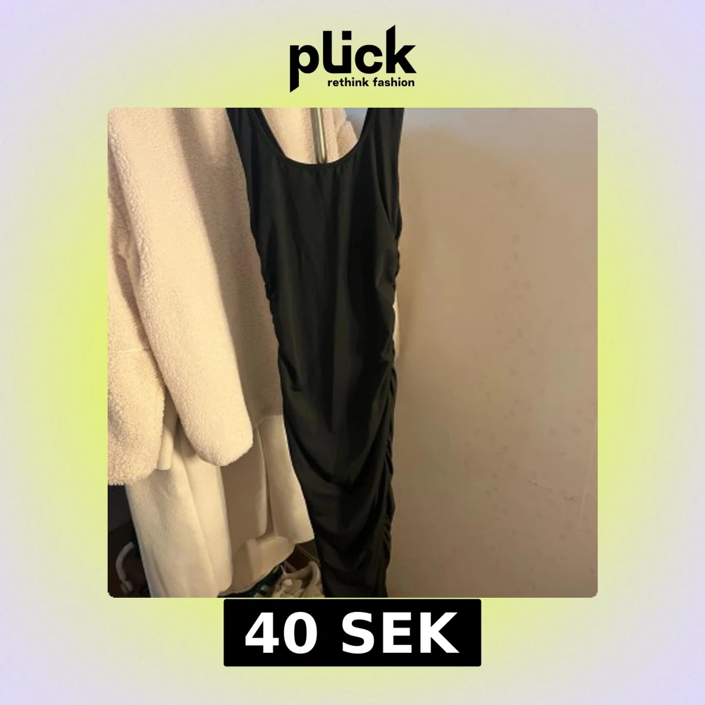 Svart långklänning från Shien med snygg rynkad detalj baktill. Klänningen är ärmlös och har en tight passform som framhäver siluetten. Tillverkad i ett stretchigt syntetmaterial som sitter bekvämt på kroppen.