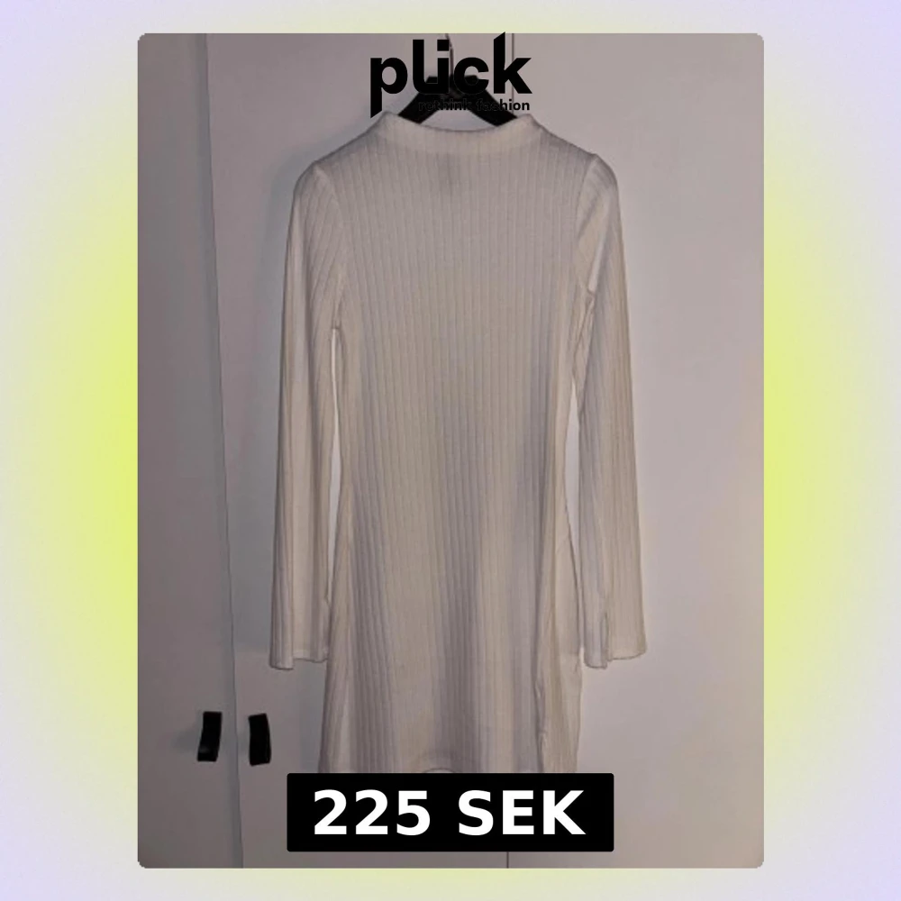 Säljer en vit, ribbad klänning med lång ärm och enkel design. Klänningen har en rak passform och är tillverkad i mjukt material som sitter skönt mot kroppen. Perfekt för dig som gillar minimalistisk stil och vill ha något som är lätt att matcha.