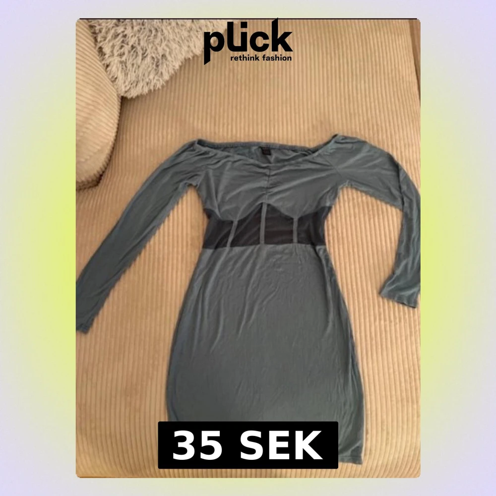Säljer en ljusblå, figurnära klänning från SHEIN i storlek M. Klänningen har lång ärm, offshoulder-design och en transparent meshdetalj över midjan som ger en cool look. Passar även Xs och S som på bilden☺️