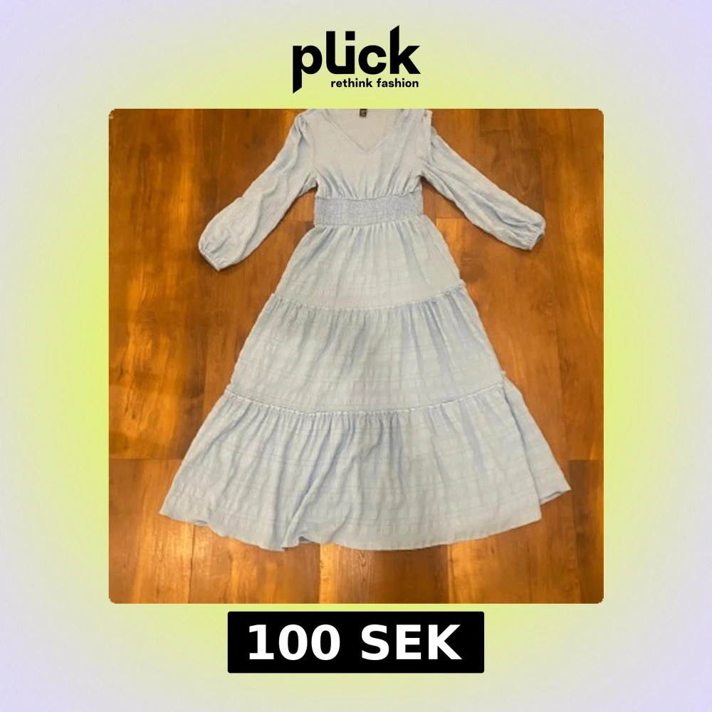 Superfin ljusblå långklänning med v-ringad hals och långa puffärmar. Klänningen har smockad midja och volanger i kjolen för en flowy känsla. Perfekt för sommarens alla tillfällen!