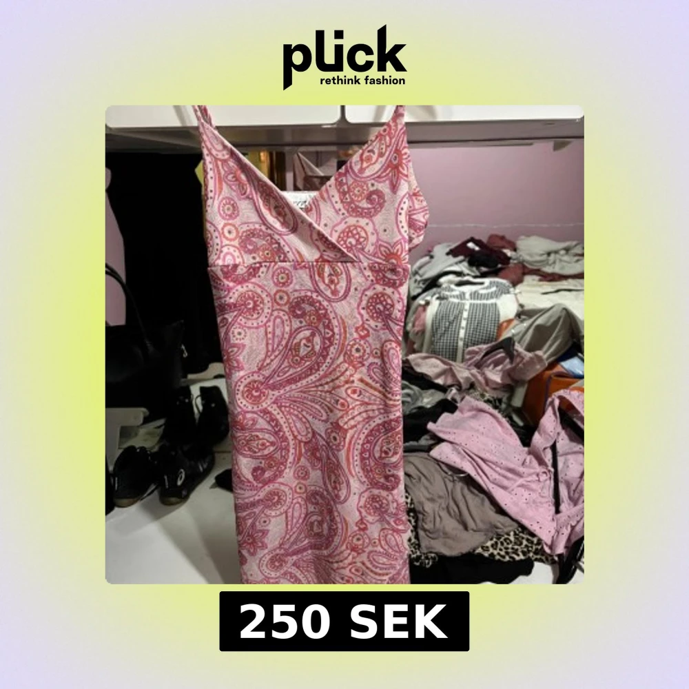 Snygg rosa klänning med paisleymönster från Currants. Klänningen har smala axelband och en v-ringad design. Perfekt för en somrig look!