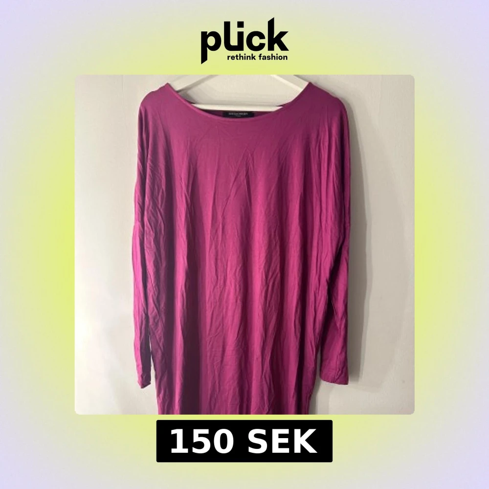 Långärmad klänning i en vacker färg. Den har en lös passform och en båtringning. Perfekt för en avslappnad men stilfull look. Storlek S men skulle säga mer en M