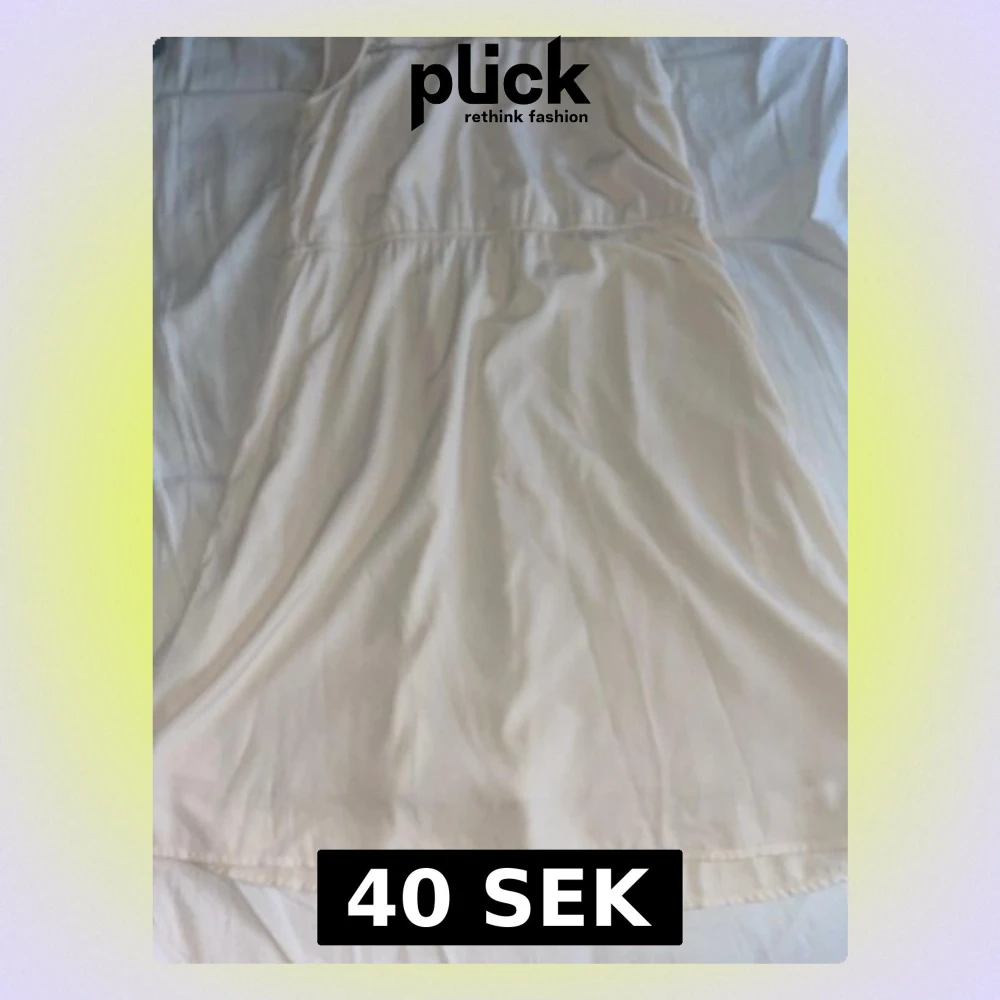 Säljer en stilren kortklänning i champagnefärg med v-ringad hals och markerad midja. Klänningen är ärmlös och har en mjuk, slät yta som ger en enkel och fräsch look. Perfekt för varma dagar och somriga tillfällen.