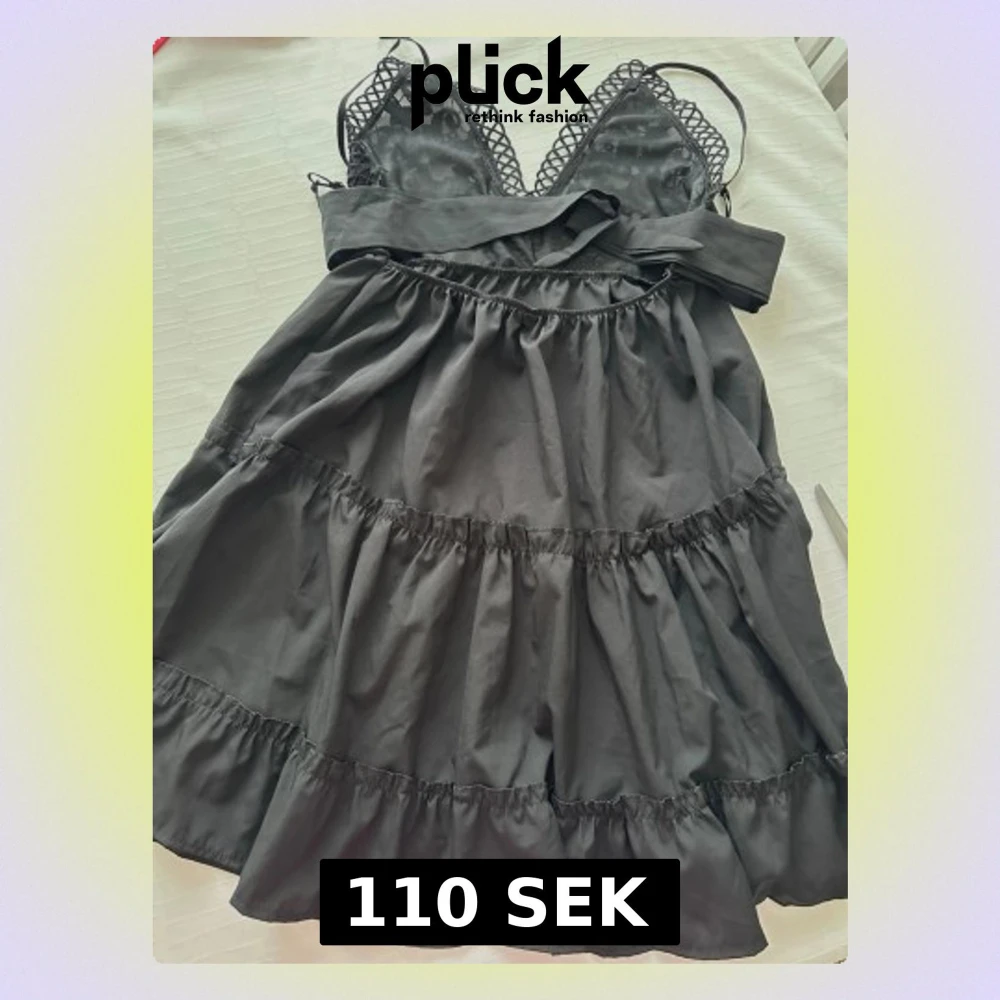 Supersöt svart kortklänning från Koyye med spetsdetaljer upptill, smala axelband och omlottknytning i midjan. Kjolen är volangig och har flera lager för extra fluff. Perfekt för dig som gillar en feminin och trendig look.