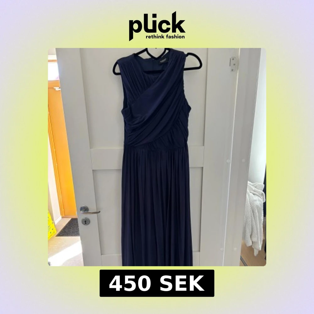 Elegant mörkblå långklänning från Sisters Point med draperad omlott-topp och ärmlös design. Klänningen har mjukt fallande kjol och stängs med dragkedja i ryggen. Perfekt för dig som vill ha en stilren och klassisk look.