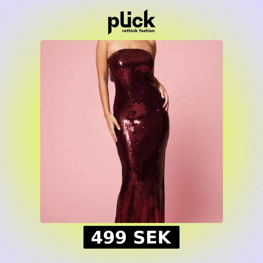 Snygg axelbandslös vinröd klänning med paljetter som ger en glittrig look. Klänningen är lång och har en slits baktill för extra stil och rörelsefrihet. Perfekt för festliga tillfällen och även nyår som är nära! Helt ny aldrig använd