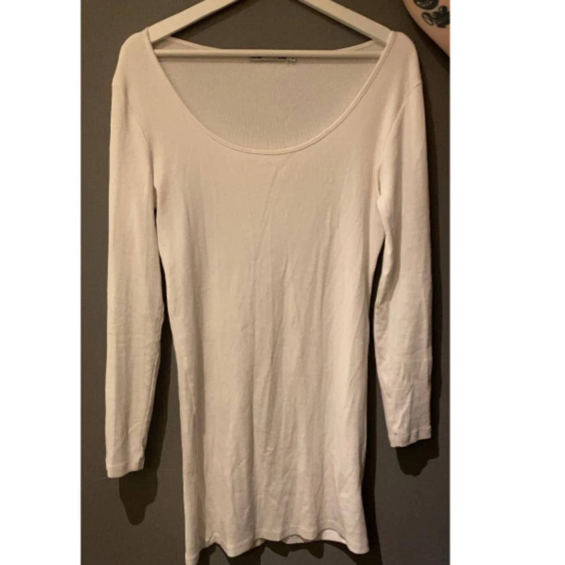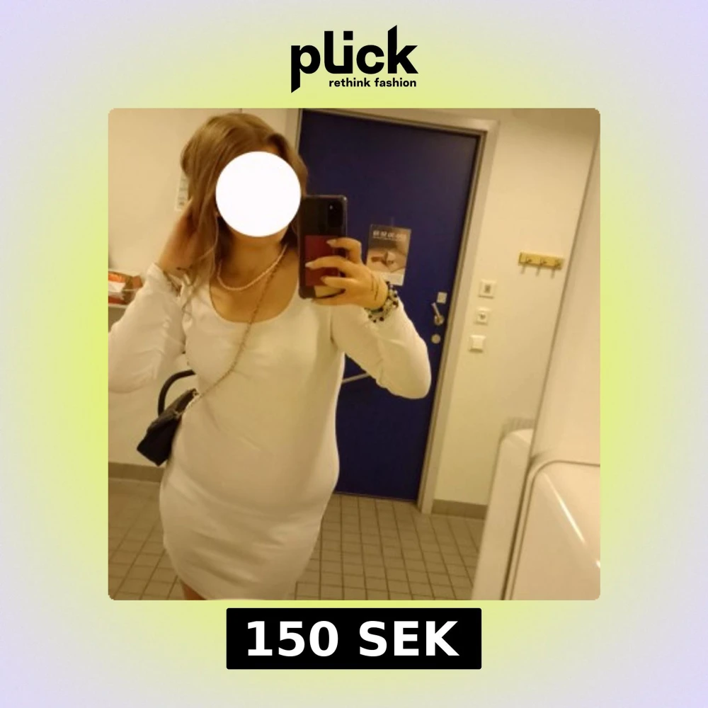 Säljer en stilren vit klänning från 157 med långärmad design och rund halsringning. Perfekt för en minimalistisk look. Klänningen är i en mjuk och bekväm bomullsmix.