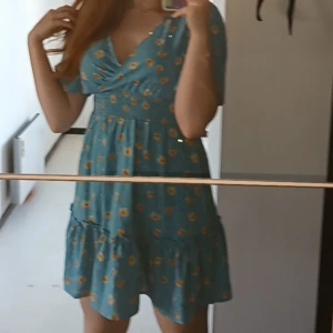 Fin blä klänning med gula blommor på från shein lite lättare tyg så luftig till sommaren