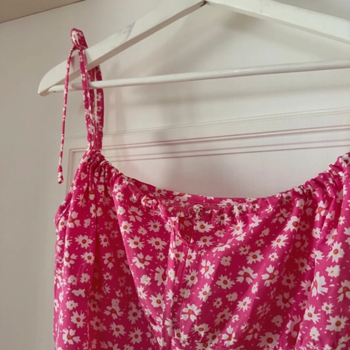 Säljer en rosa blommig sommarklänning som endast är använd 1 gång. Still L men jag skulle snarare säga att den passar en storlek M