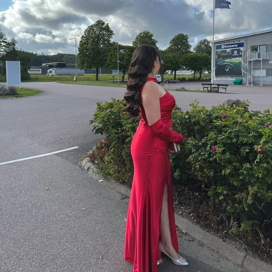 ✨ Röd elegant klänning – perfekt till bal eller fest! ✨ Säljer en vacker röd klänning i glansigt, följsamt tyg som sitter perfekt och framhäver figuren på ett smickrande sätt. Draperad över byst och midja med en stilren slits framtill för en tidlöst elegant look. Matchande långa handskar ingår. 🌹 Storlek: 38–40 🌹 Pris: 3000 kr 🌹 Använd: Endast en gång, i nyskick 🌹 Passar till: Bal, fest, bröllop, nyår eller andra högtider Kan provas/hämtas i Borås, köras till Göteborg eller skickas mot frakt