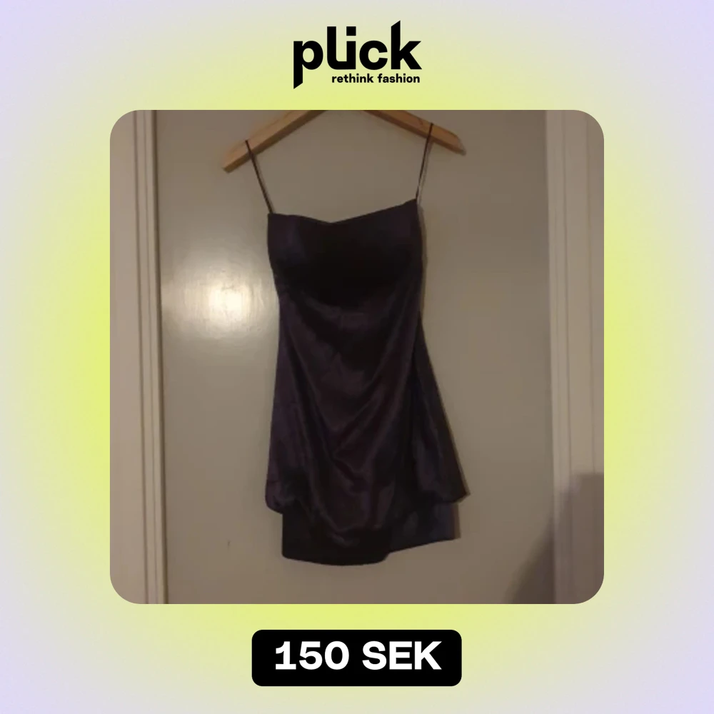 Säljer en elegant lila klänning utan axelband. Den är gjord i ett glansigt material som ser ut som satin och har en figurnära passform. Perfekt för festliga tillfällen!