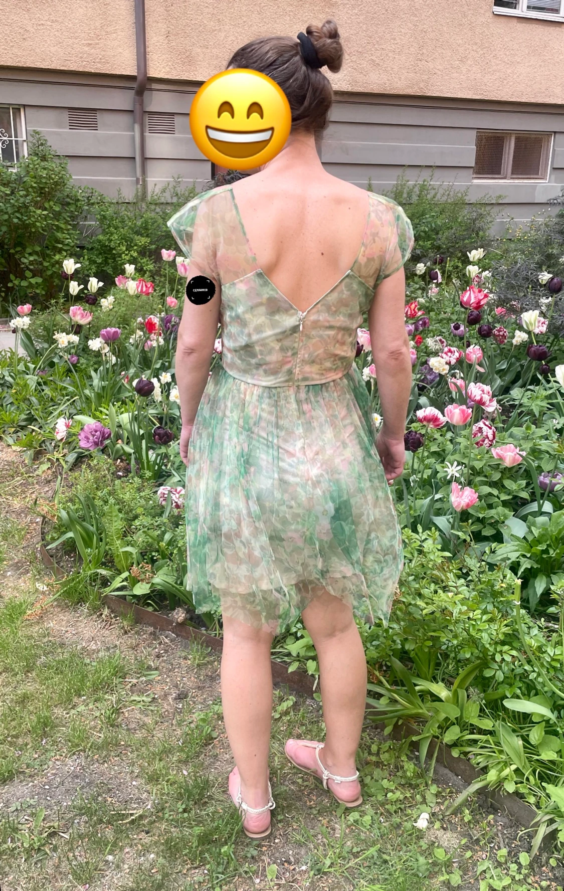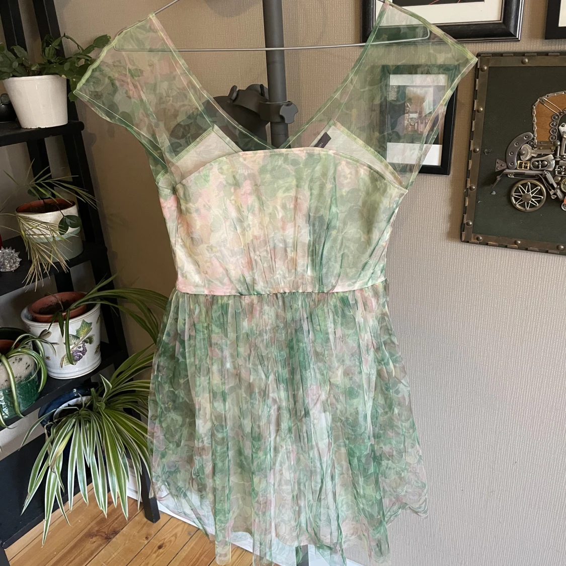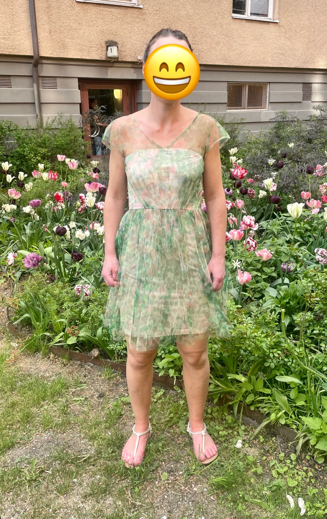 Verkligen ljuvligaste klänningen! Endast provad. Ljusrosa supermjuk underklänning sedan ett lager av tyll-liknande (polyester) över. Två lager av detta material vid kjolen. NWT Nypris 1995kr
