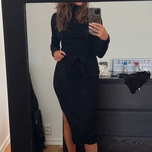 lång ribbad tajt långärmad klänning med polokrage, den har även ett snöre till som man kan knyta runt midjan, super fin till hösten 💕