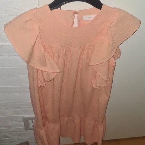 Zara strl XS (S) Vit kort med volang - Supersöt kort vit klänning med volangdetaljer på axelbanden och snörning framtill. Klänningen har en tight passform och är gjord i ett lätt, rynkat material som ger en snygg struktur. Perfekt för sommarens alla tillfällen och ger en romantisk vibe. Strl S men är liten i storleken, som en xs/32.