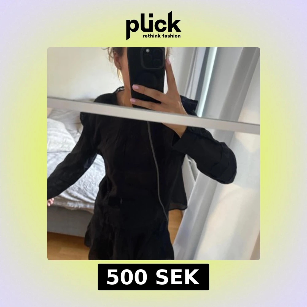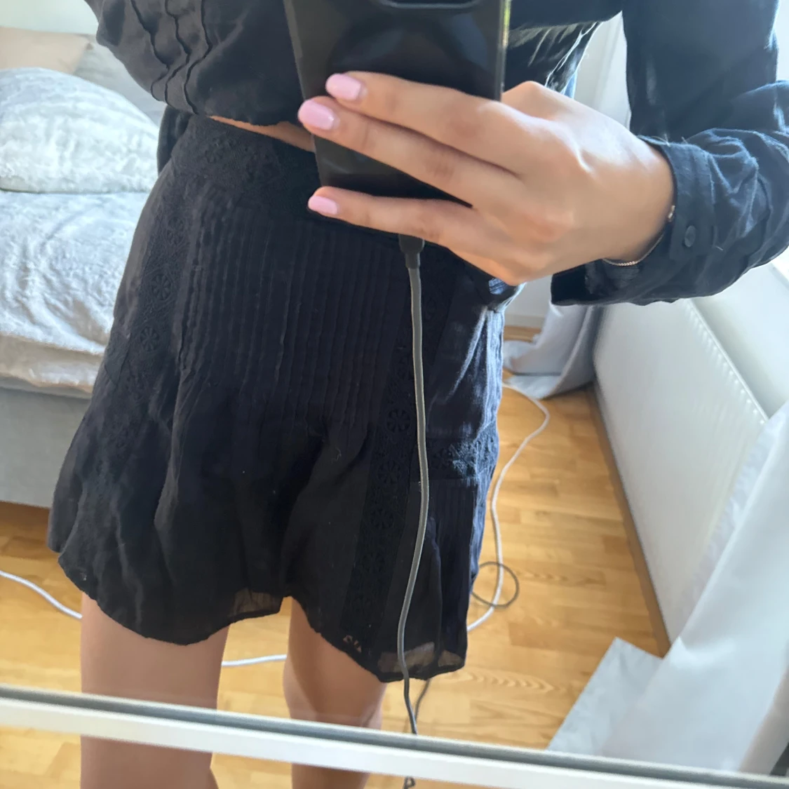 Supersöt svart kort set med långa ärmar och fina spetsdetaljer vid axlar och halsringning. Klänningen har en flowy passform och volang nertill, perfekt för dig som gillar en romantisk och chill vibe.