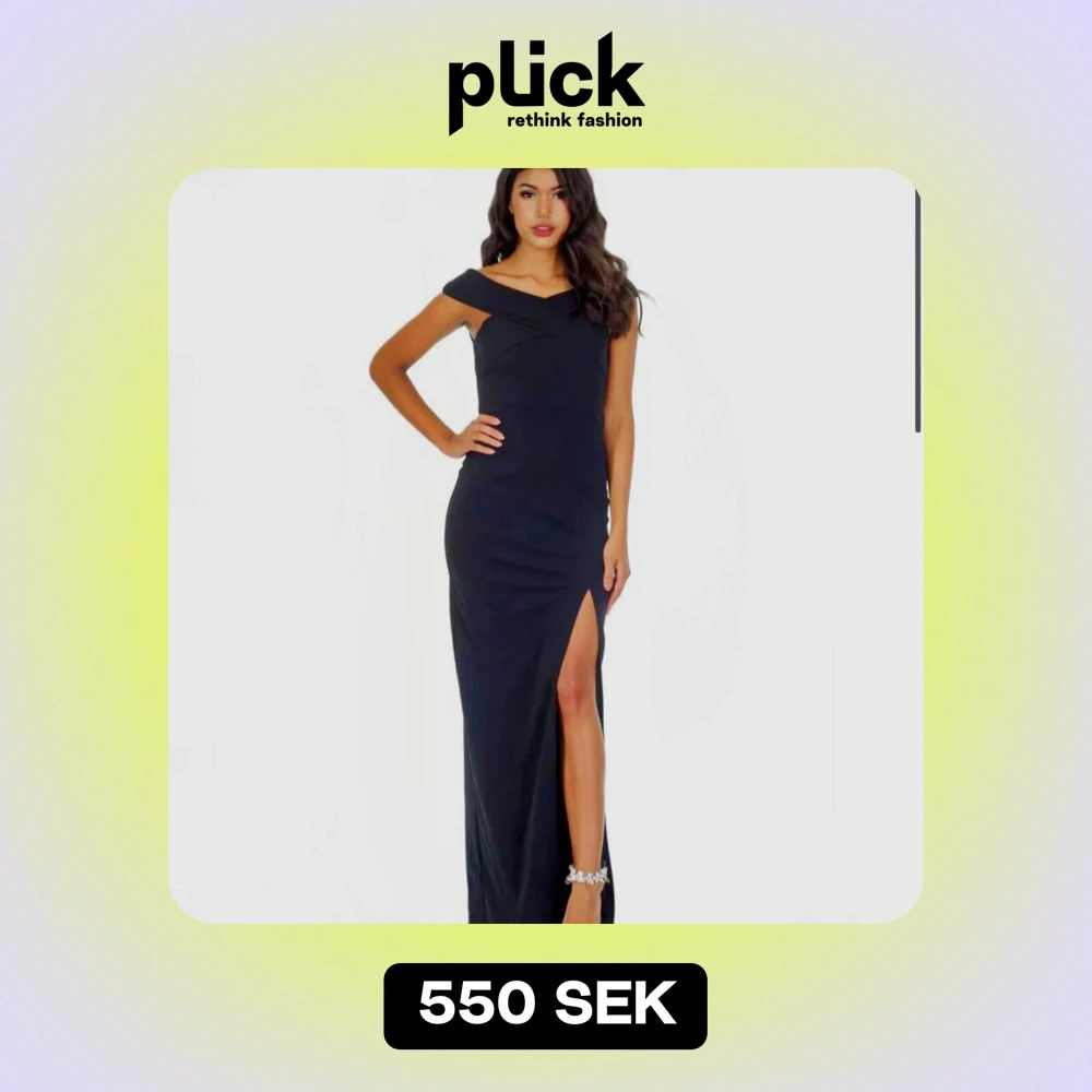 Elegant marinblå långklänning med ett slits och offshoulder-design. Perfekt för festliga tillfällen eller balen. Klänningen har en smickrande passform och är tillverkad i ett mjukt material som ger en bekväm känsla hela kvällen. Passar både S och M.