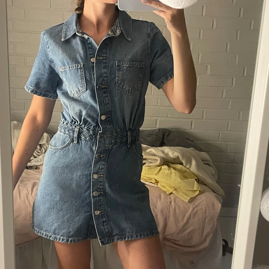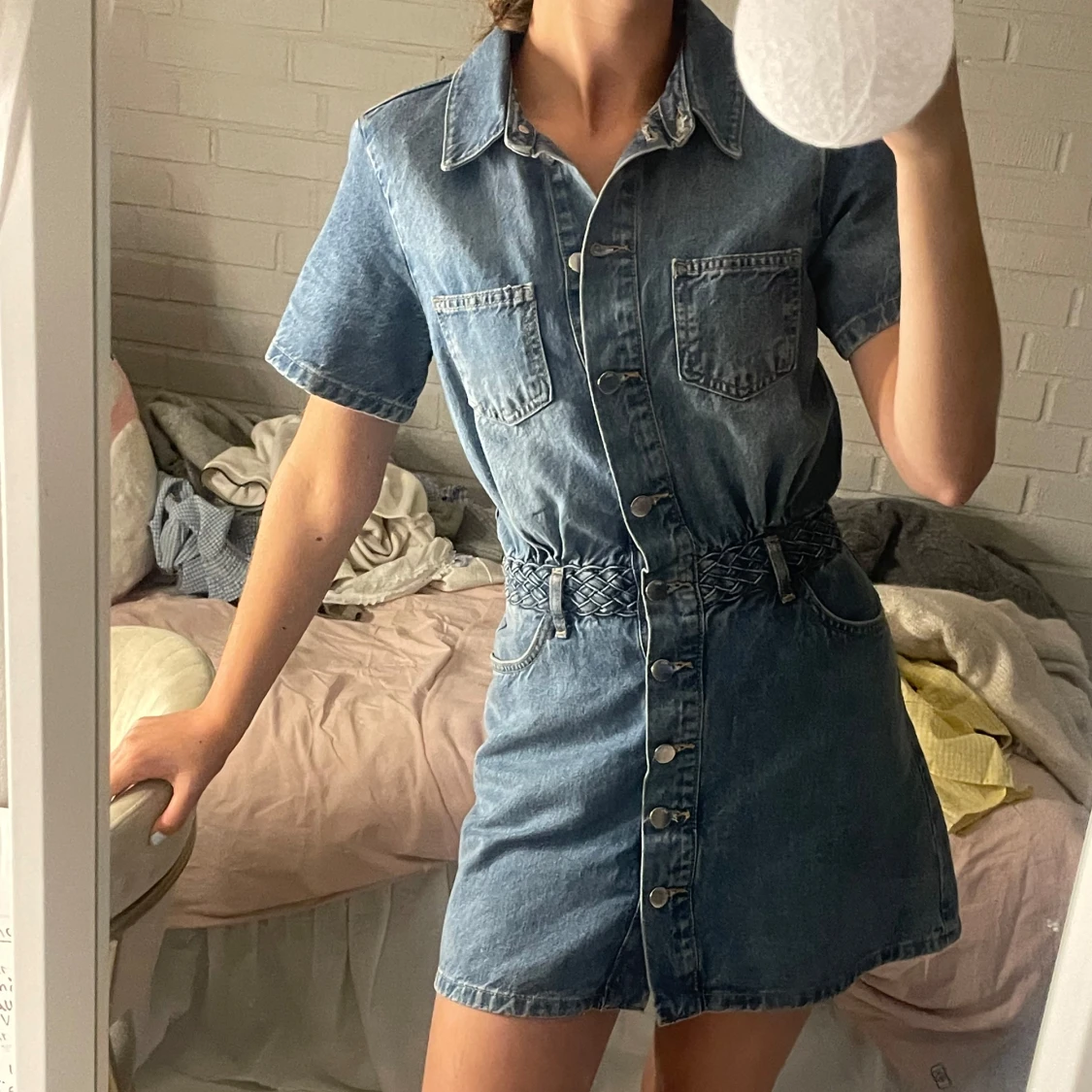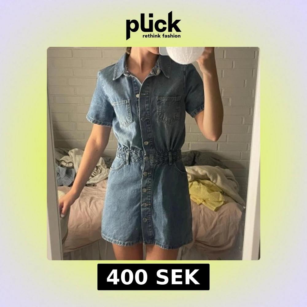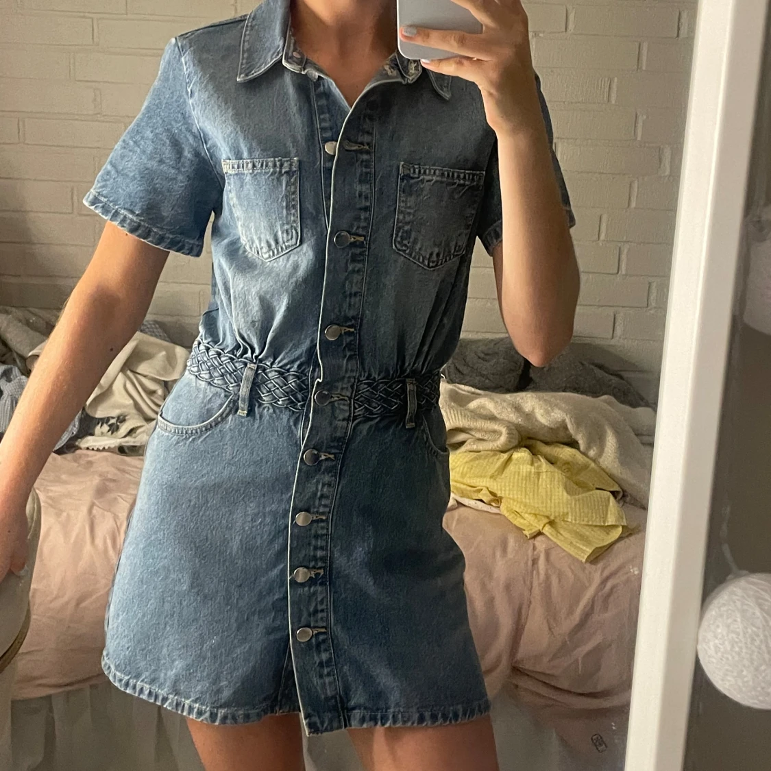 Jeansklänning med flätat bälte