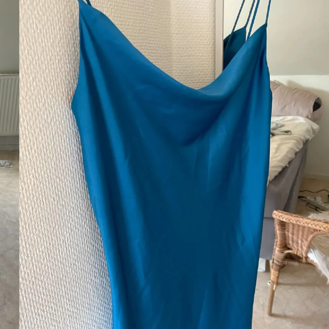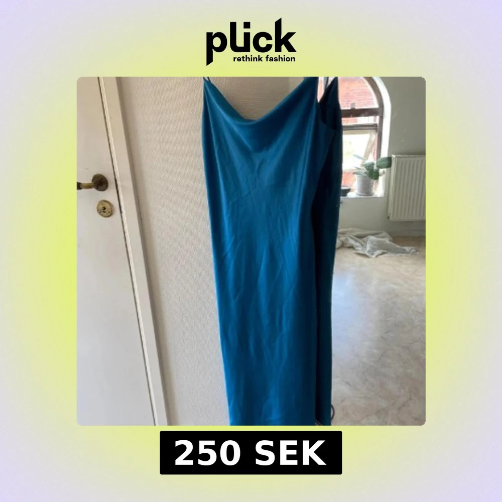 Snygg blå klänning från Frakment med smala axelband och en elegant, enkel design. Perfekt för en stilren look. Klänningen har en mjuk och följsam passform som ger en bekväm känsla. Formar sig otroligt fint på kroppen! Nypris ca 900kr. Oanvänd.