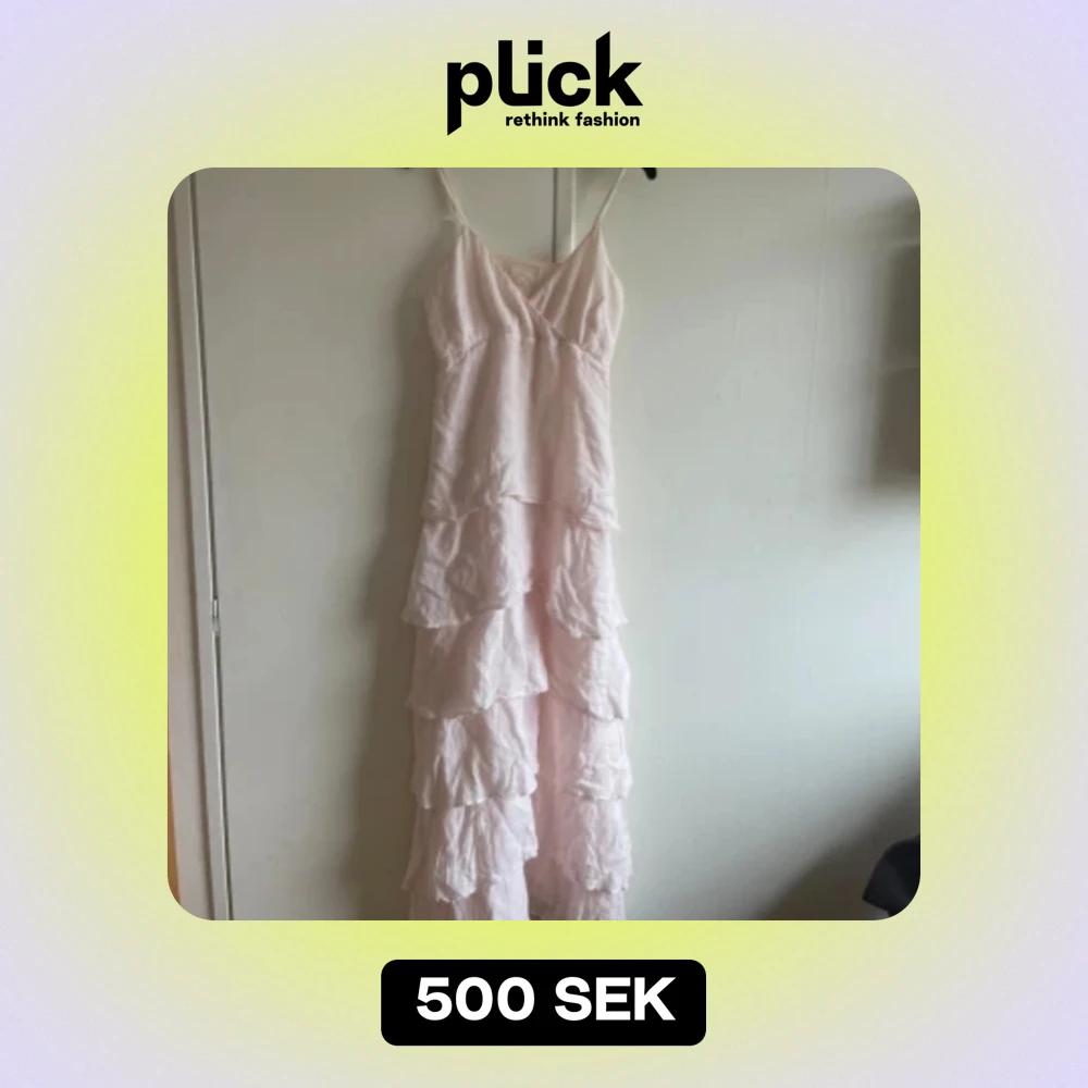 Så sjukt vacker ljusrosa klänning med volanger i äkta linne från bramting. Hade gärna haft på mig denna i sommar men den är tyvärr för liten för mig! Storlek S och är till anklarna på mig som är 175cm lång❤️