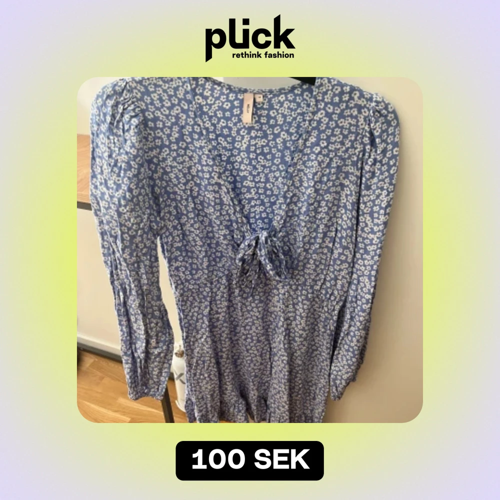 Blå blommig midsommarklänning med en V - urringning Storlek 40 Använd 1 gång