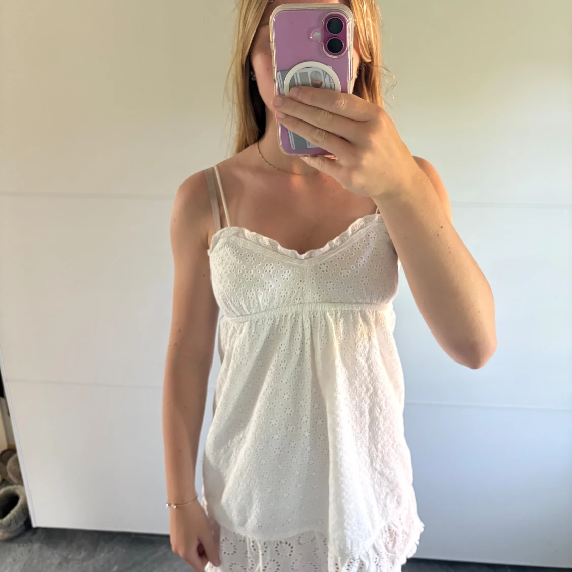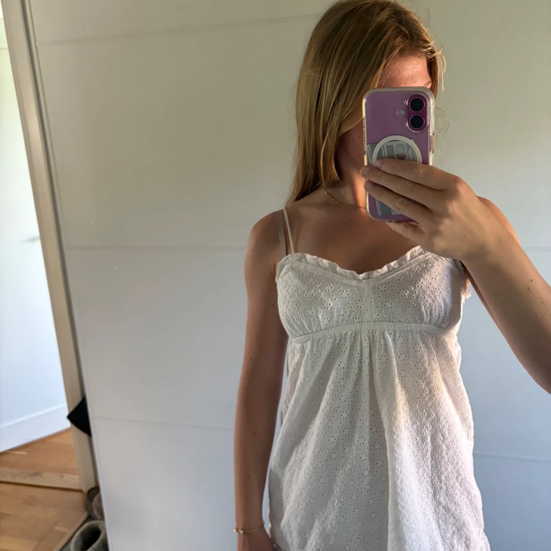 En jätte fin kläning perfekt till sommardagarna! Finns inget märke. Den har fina unika detaljer som små blommor och den sitter jätte fint!