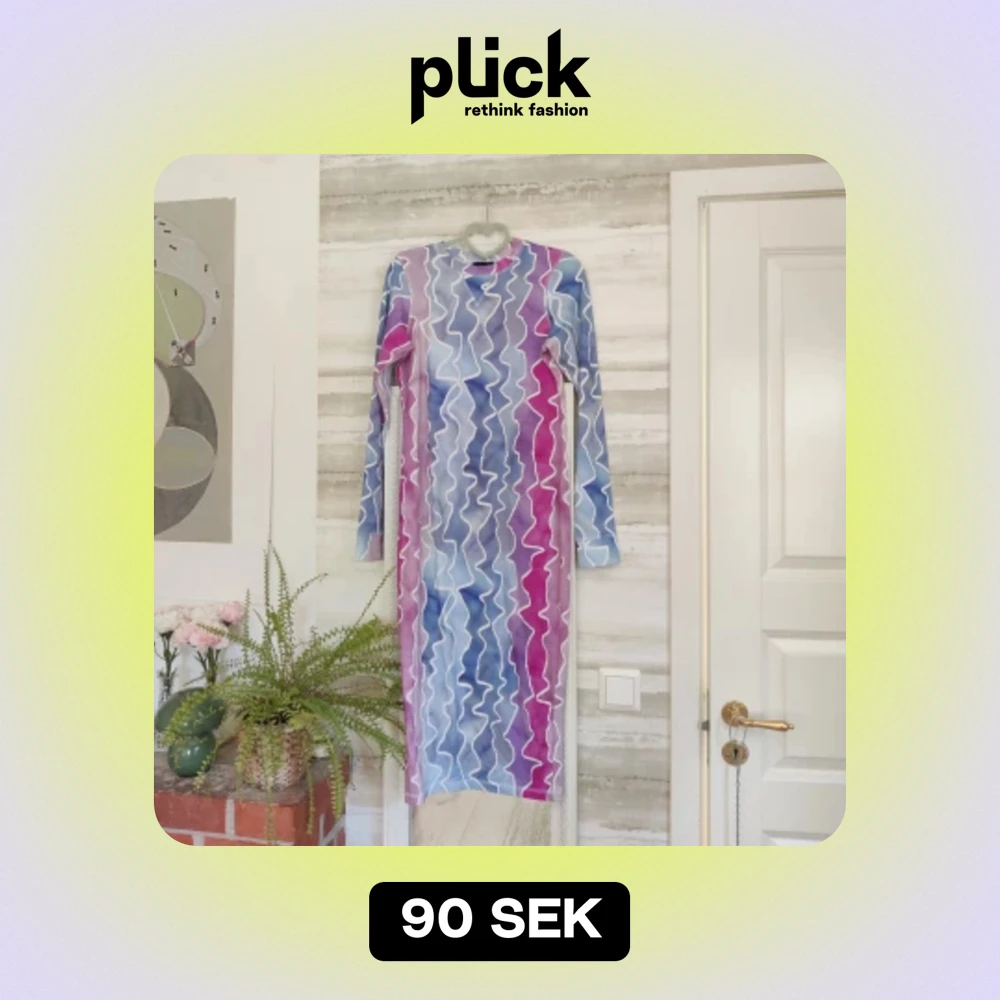 Rosa, vit, lila, blå mönstrad klänning från Asos från typ 10 år sen, oanvänd. Jättefin! Sitter tajt, är stretchig. På mig som är 165cm går den nedanför knäna.