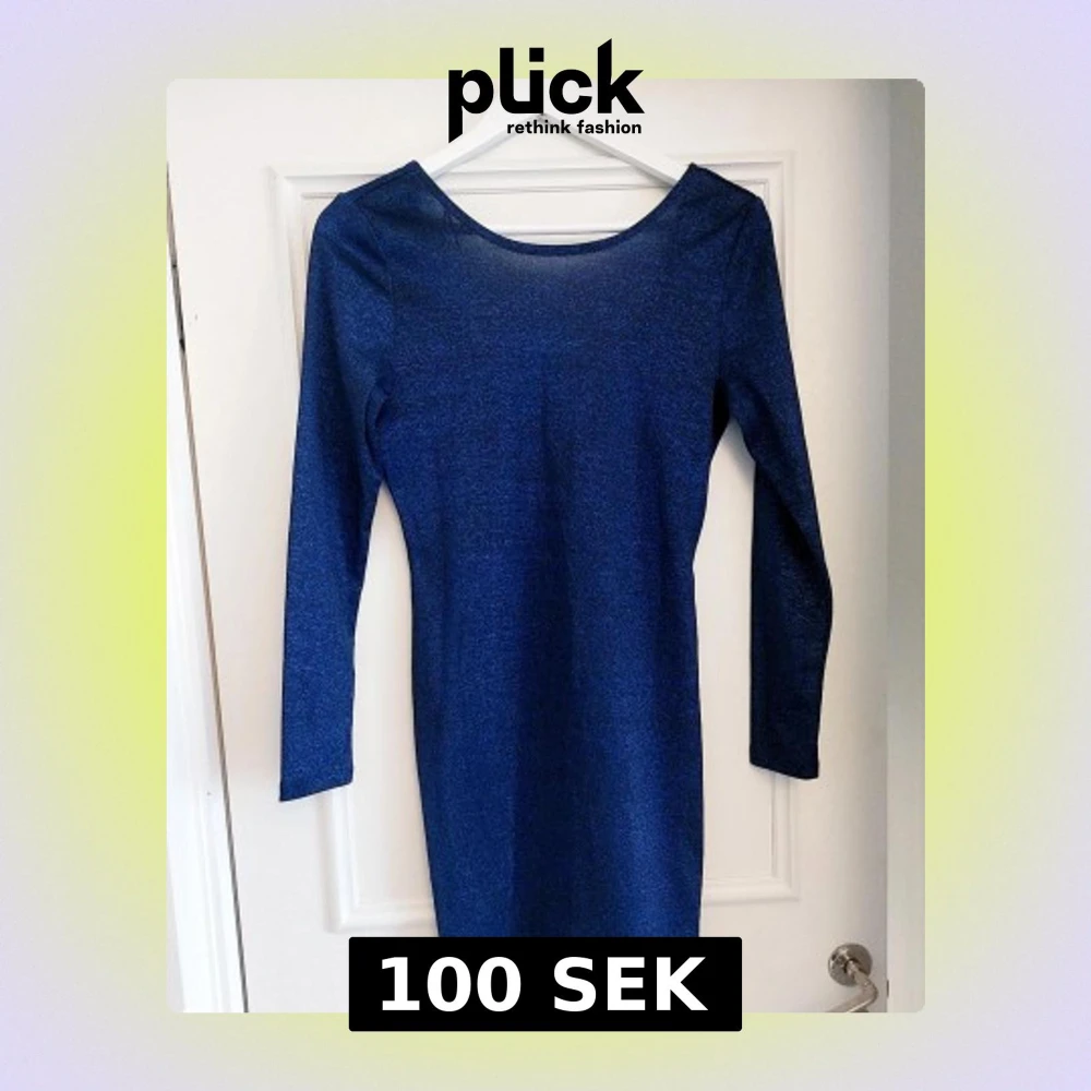 Snygg mörkblå klänning från H&M med lång ärm och rundad halsringning. Modellen är kort och har en slim passform som sitter fint på kroppen. Materialet är mjukt och stretchigt, perfekt för dig som gillar enkel och stilren design.