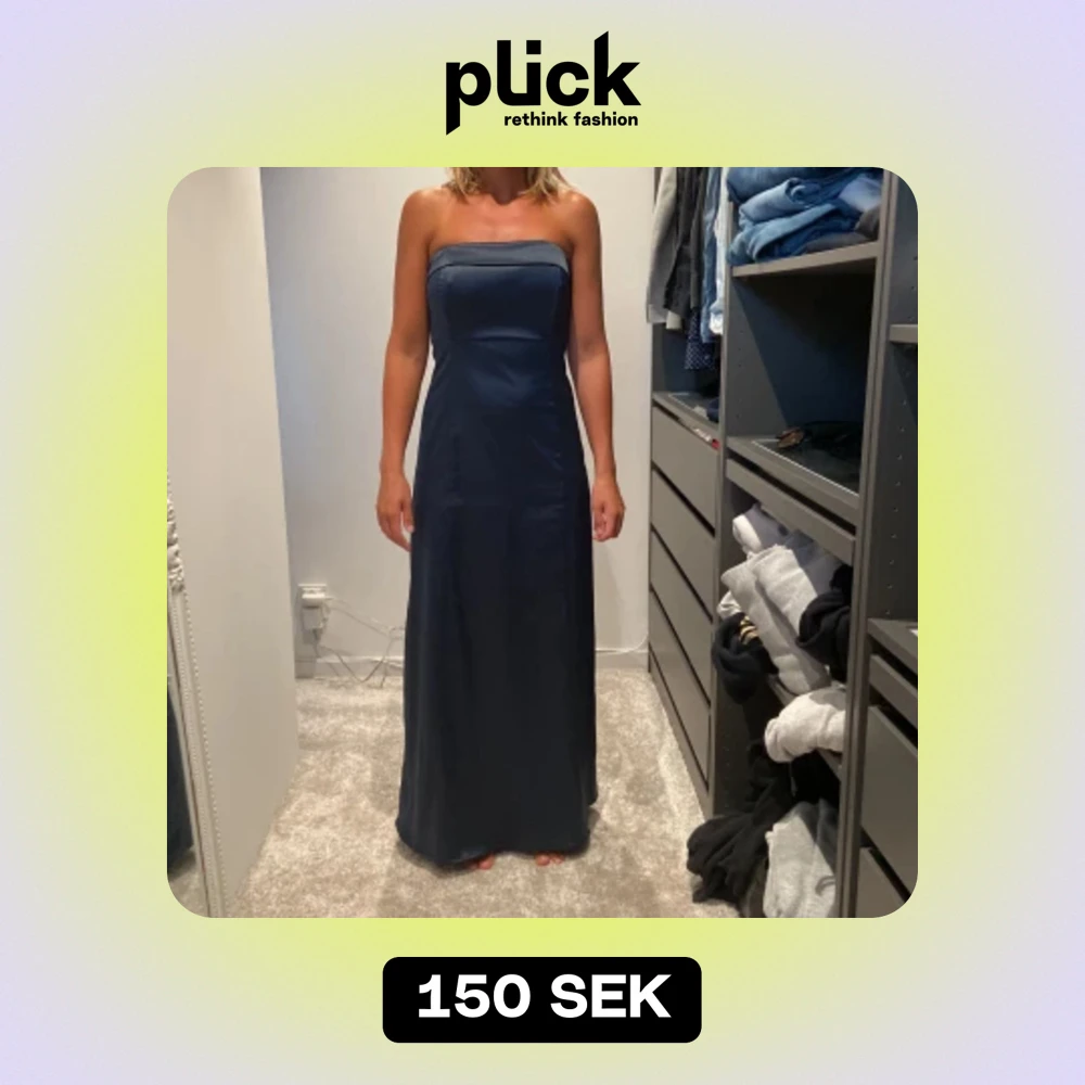 Säljer en elegant mörkblå långklänning från Vila i storlek XS. Klänningen är axelbandslös och har en tight passform som framhäver figuren. Perfekt för fest eller bal! 💙