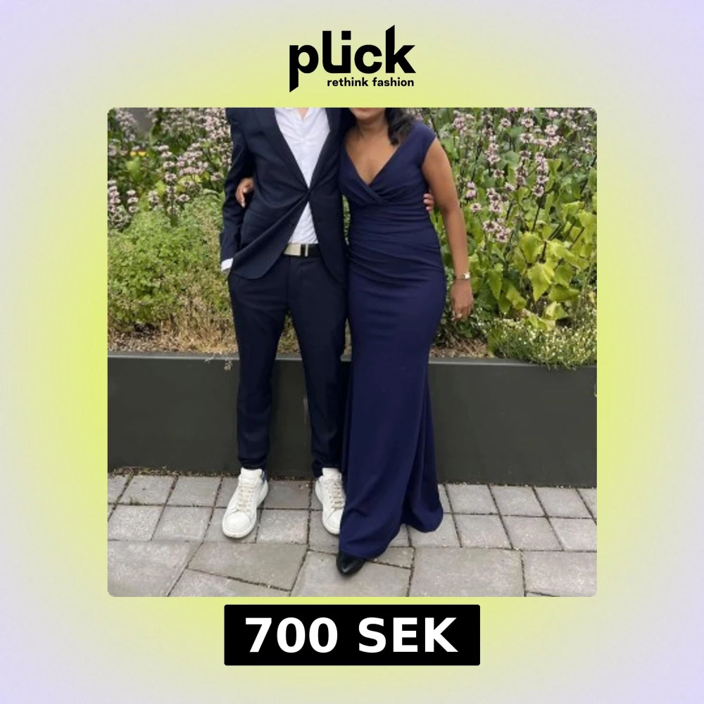 Mörkblå långklänning med v-ringning