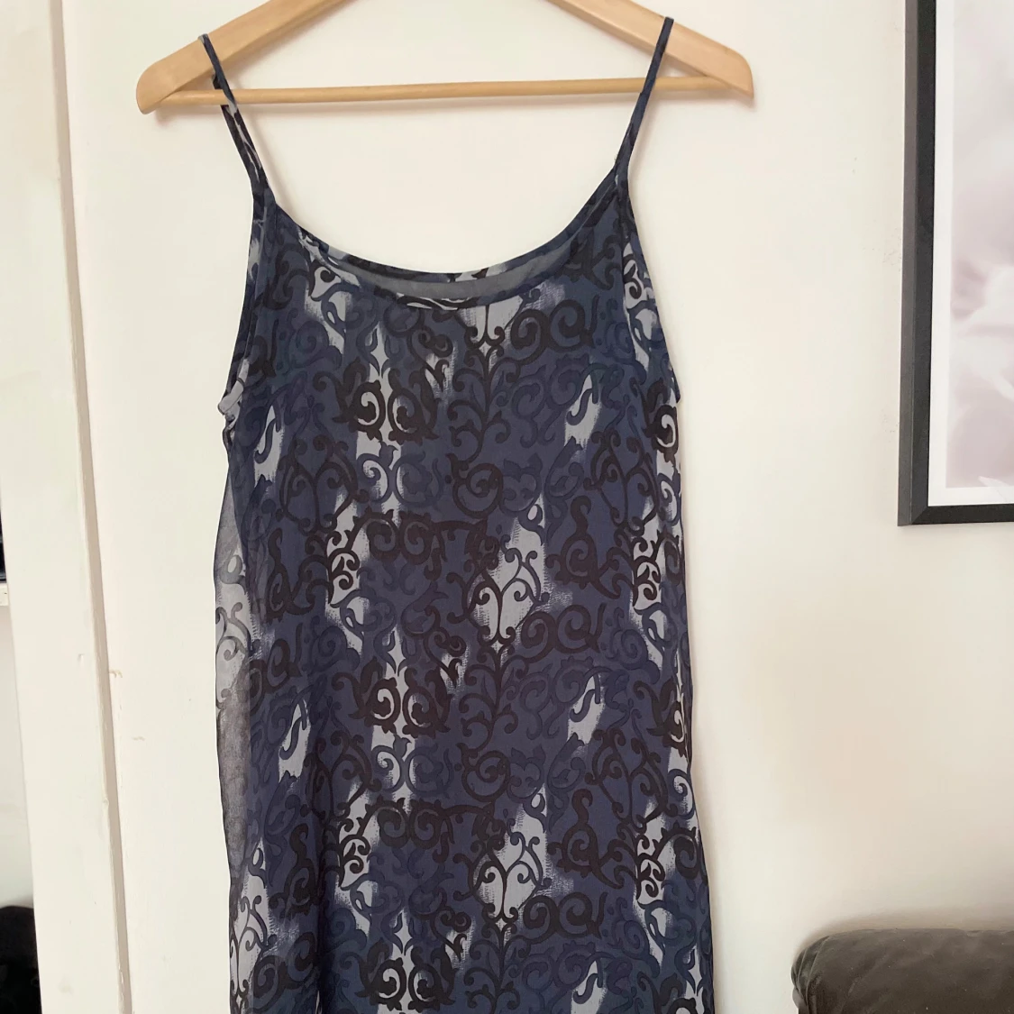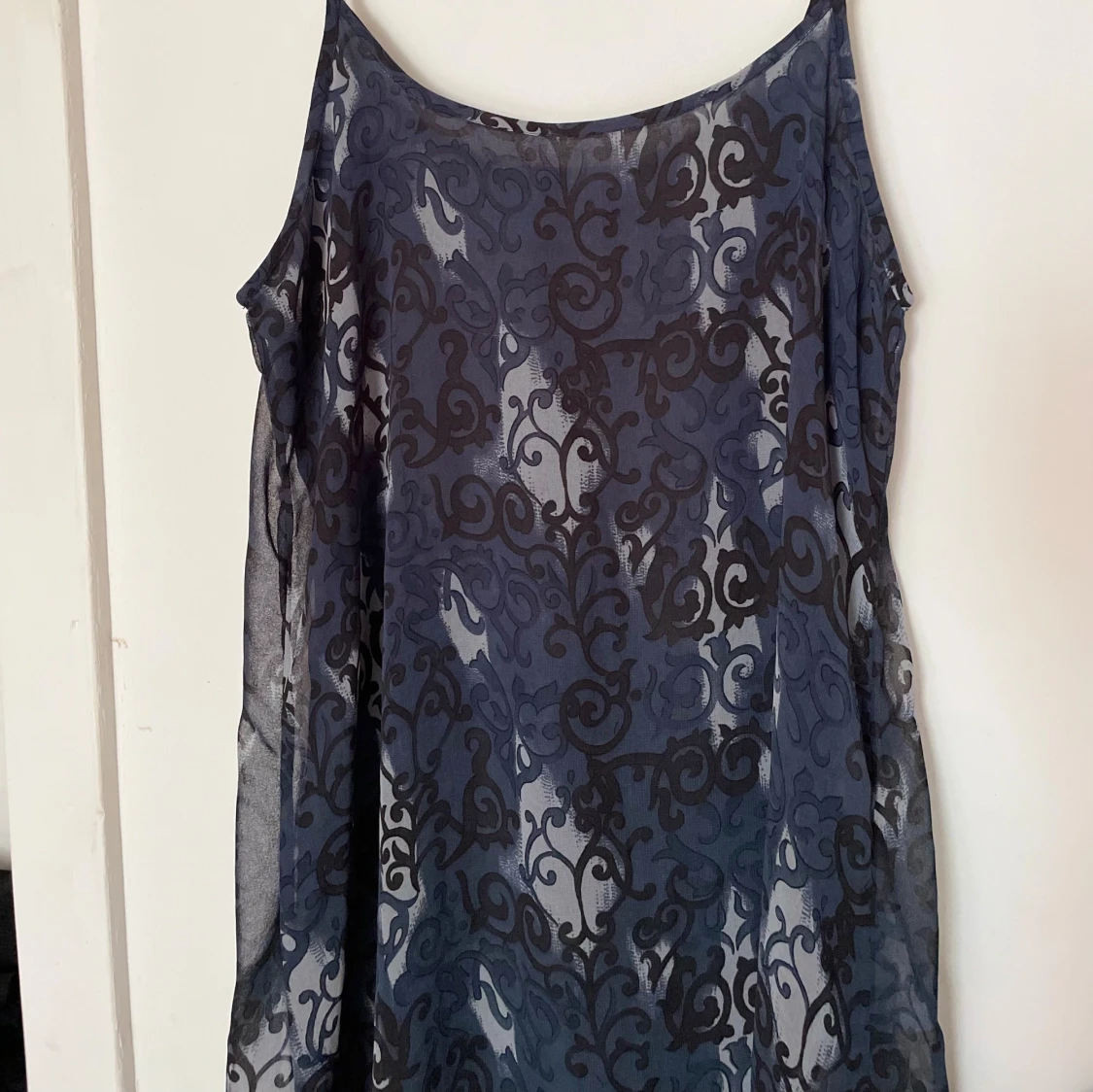 Säljer en långklänning med tunna axelband i mörkblått och svart mönster💙