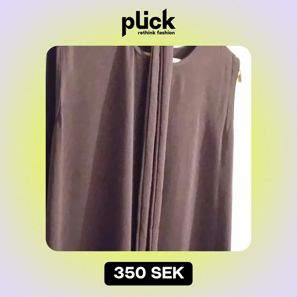 Elegant mörkbrun långklänning i ett mjukt och flödande material. Klänningen är ärmlös och har en stilren design som passar perfekt för höst- och vinterfester. Den långa längden ger en sofistikerad look.