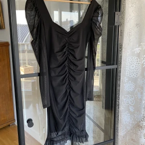 Jag älskar den här klänningen men tyvärr passar den inte mig. Jätteskönt tyg. Ärmarna är genomskinligt tyg och längst nere vid kjolen. Den är knappt använd.
