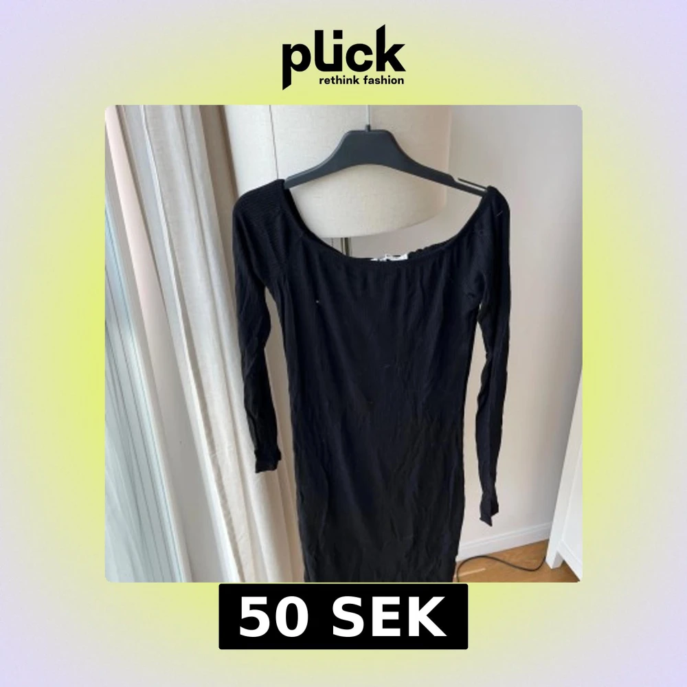 Säljer en svart ribbad klänning från NA-KD i storlek S. Klänningen har lång ärm och en bred, rundad halsringning som ger en snygg offshoulder-look. Materialet är mjukt och stretchigt, perfekt för dig som gillar en slim passform.