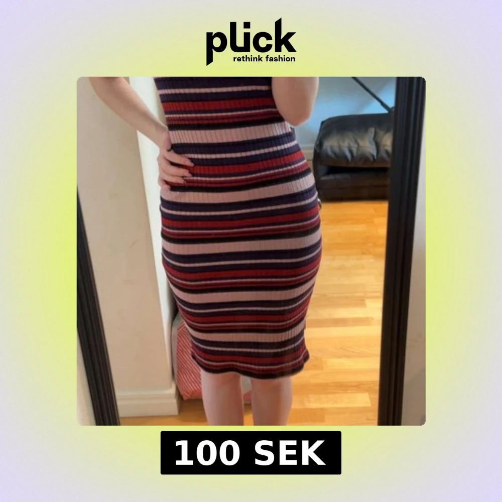 Säljer en tight, ribbad klänning från NA-KD i storlek XS. Klänningen är knälång och har horisontella ränder i lila, rött, rosa och mörkblått. Den är ärmlös och har en figurnära passform som framhäver siluetten. Perfekt för dig som gillar färg och mönster!