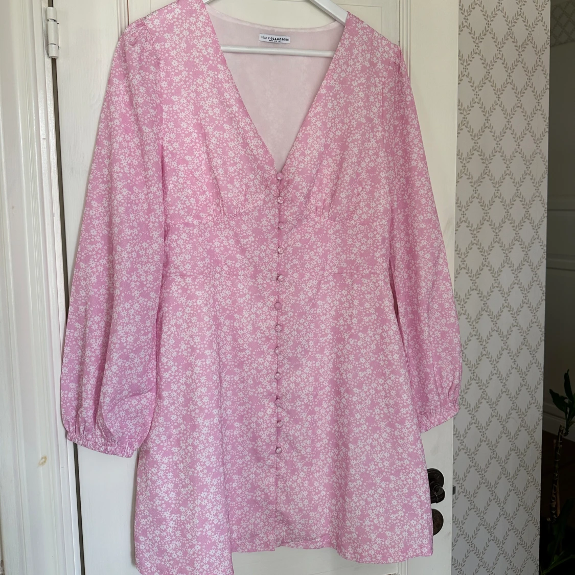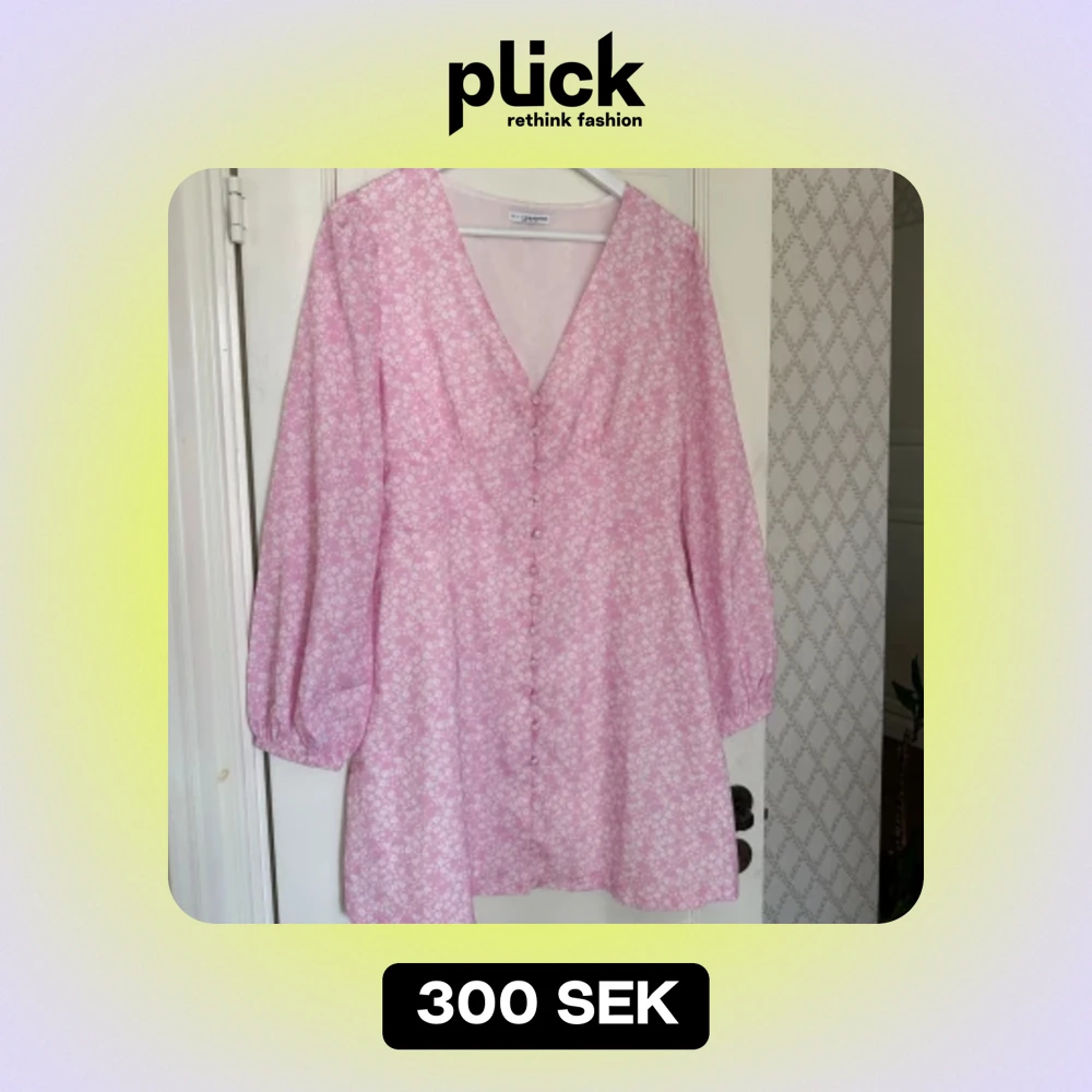 Supersöt miniklänning i ett ljusrosa tyg med vita små blommor på. Helt oanvänd, storlek 40