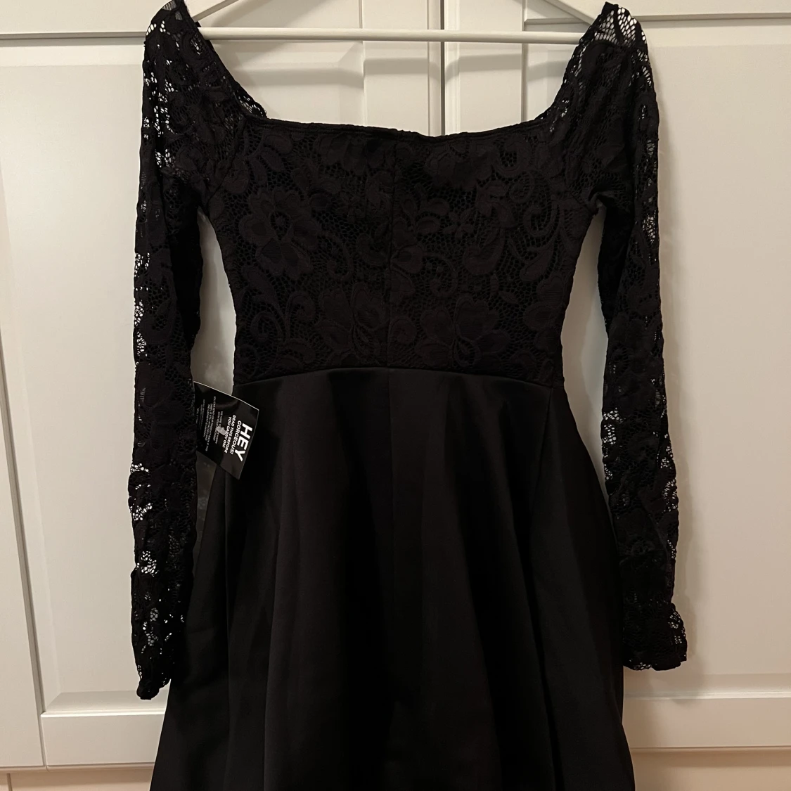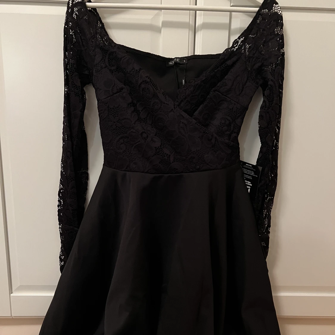 En svart klänning från nelly med spetstopp. Aldrig använd och lappen sitter kvar. Pris kan diskuteras!
